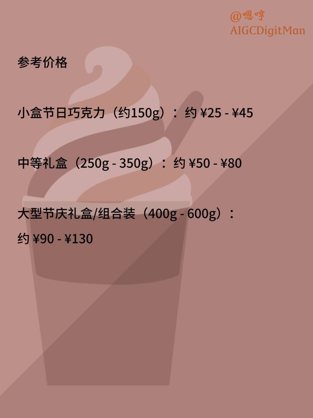 小盒节日巧克力(约150g):约 ¥25 - ¥45