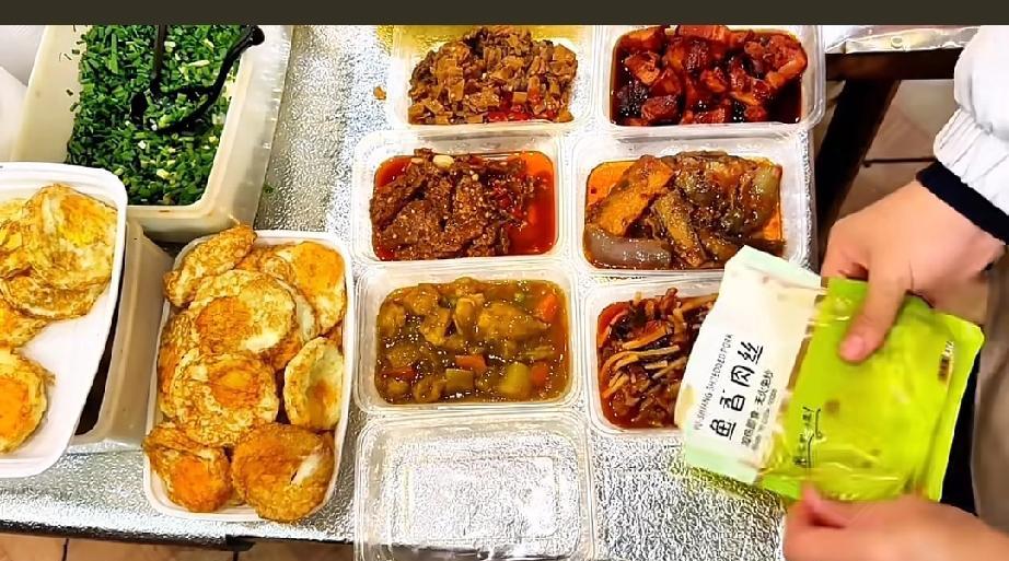 有些外卖都是这样操作的,操作方法非常简单:直接从冰箱里拿出来一袋带菜,然后烧一锅热水,连袋子直接下入锅中,等三到五分钟把袋子捞出来。 最后一步非常重要,把袋子剪开倒入盒子里。 其实这都不需要技术含量,最需要技术含量的是你要会煮米饭才行,是不是很难。 少点外卖。