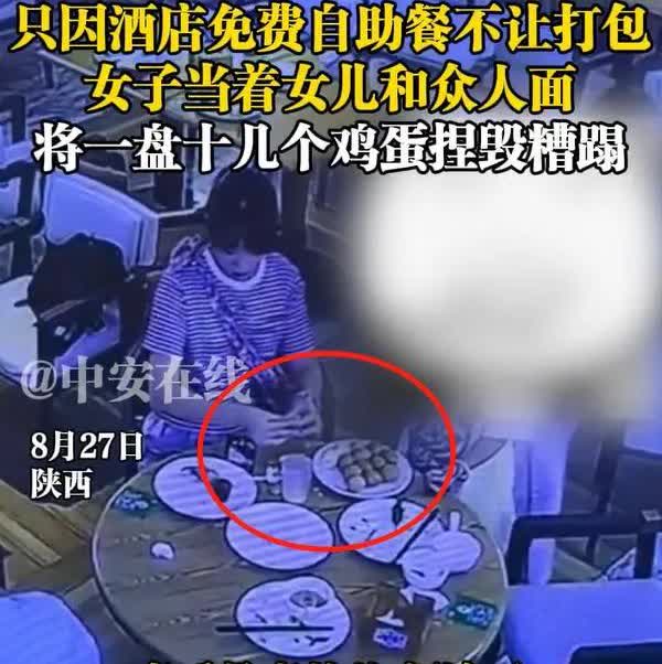 捏碎的是蛋,丢掉的是脸! 只因酒店免费自助餐不允许打包,一位女子当着女儿和