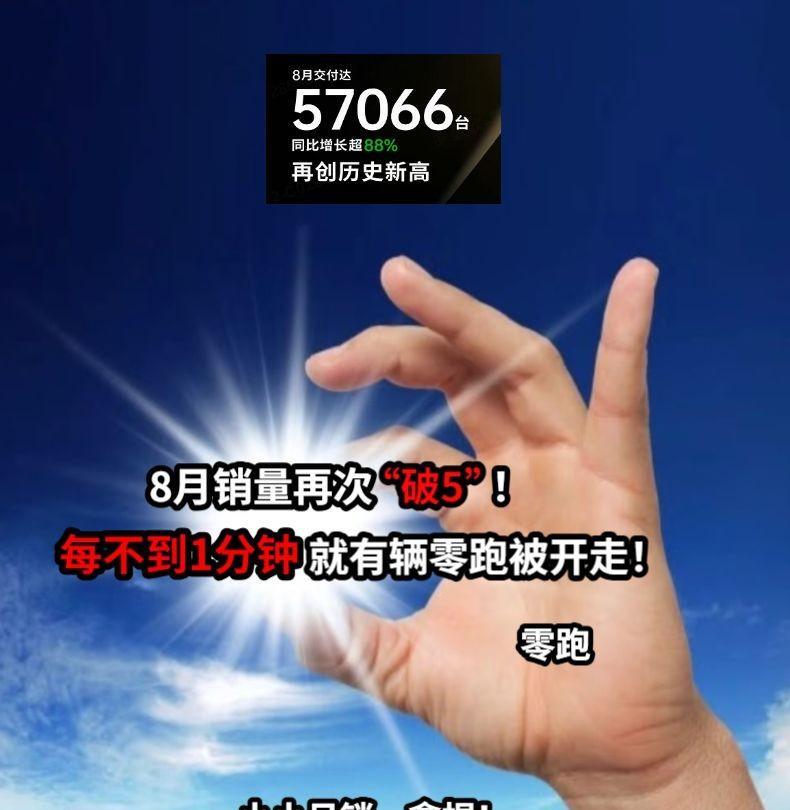 8月销量5.7万再获第一,连续两个月破5万远超理想、小鹏! 今日,零跑汽车公布了