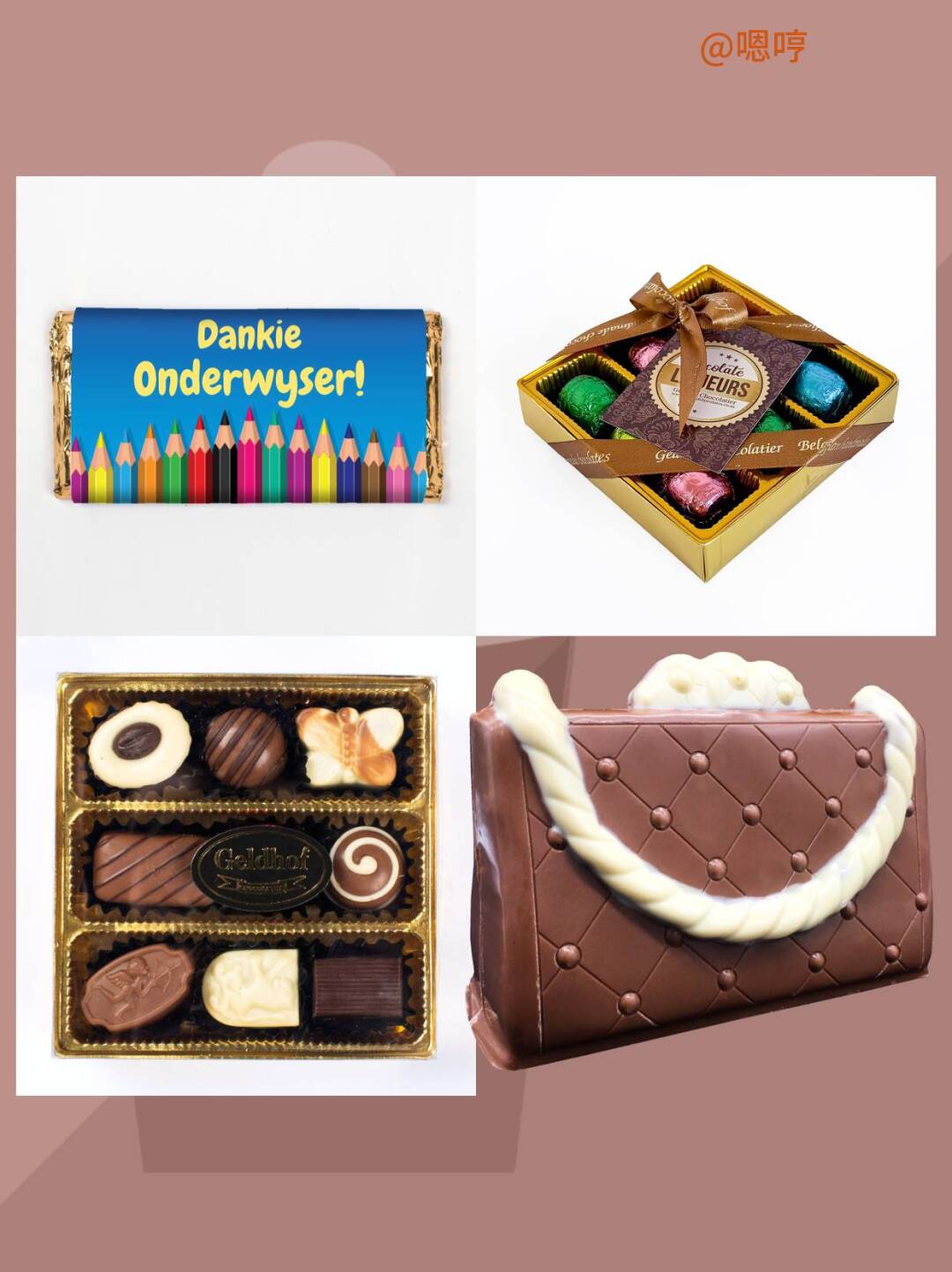 多样巧克力产品:包括牛奶巧克力、黑巧克力、夹心巧克力、松露巧克力等。