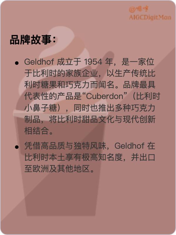 Geldhof 成立于 1954 年,是一家位于比利时的家族企业,以生产传统比利时糖果和巧克力而闻名。