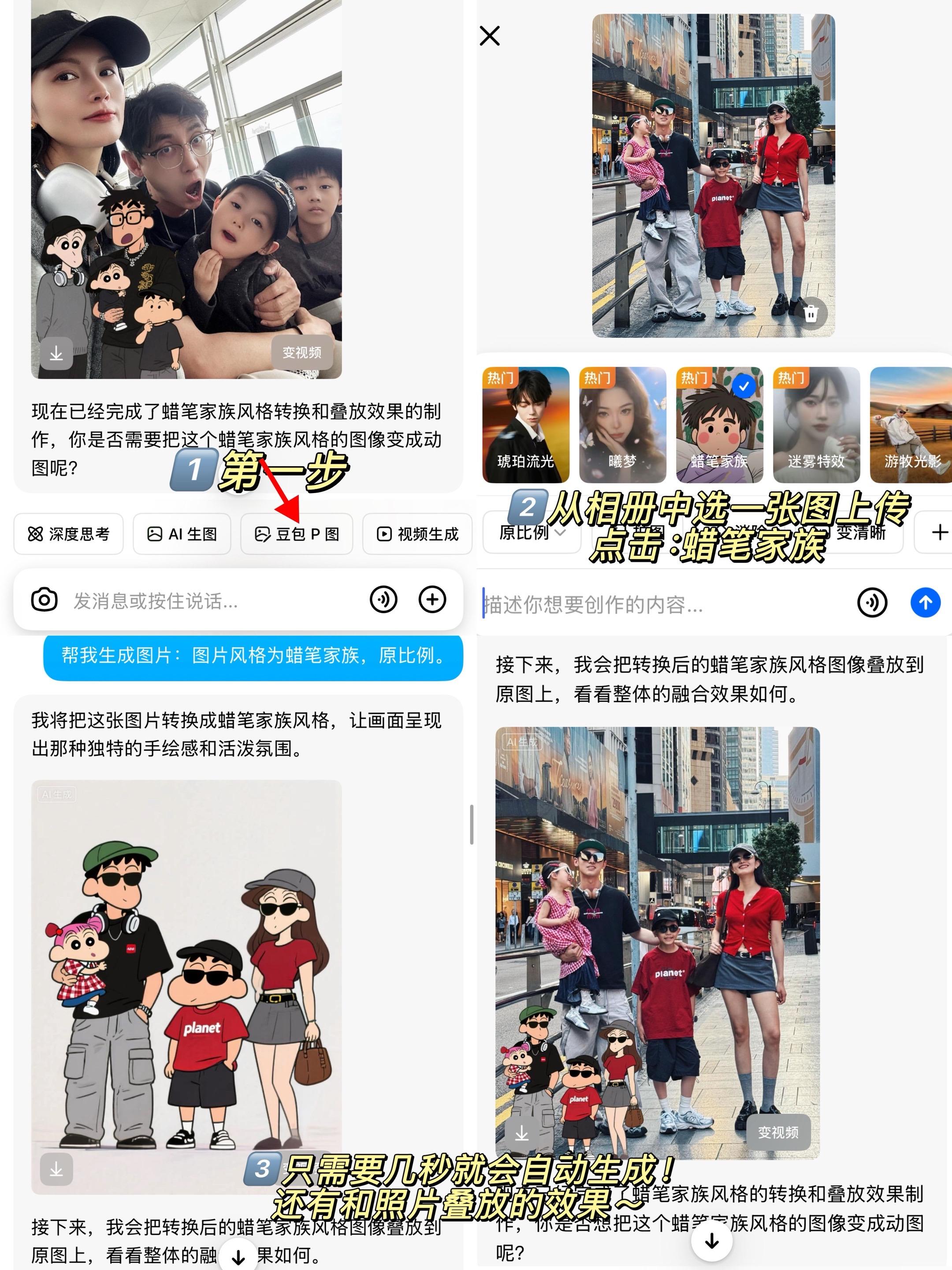 附教程🙋♀️刚出的蜡笔小新风格Get.- 这也太适合亲子群像了吧 真的可爱晕了!!! 大家快去试试🥳 感觉照片都变得有趣起来啦~