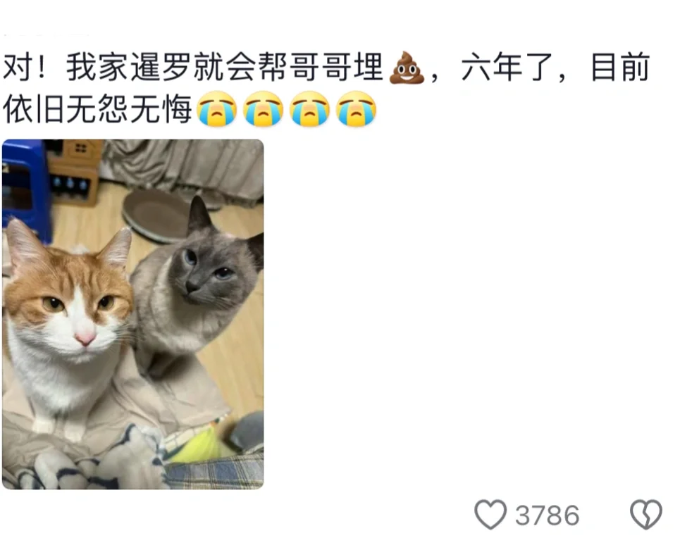 哈哈哈哈,网友家的狸花猫刚大便完没有埋起来就进屋躺着了,臭到了暹罗猫,然后暹罗猫故意cai了狸花猫后就去帮忙mai起来了,暹罗猫真的会平等的照顾每一个人!