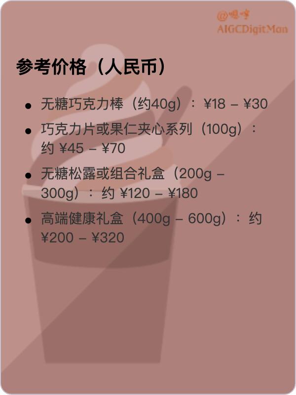 无糖松露或组合礼盒(200g - 300g):约 ¥120 - ¥180