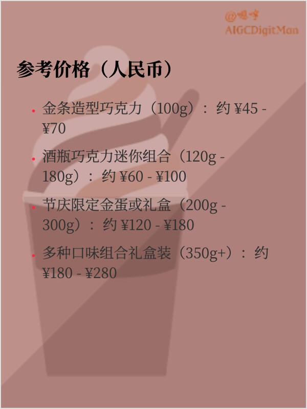 金条造型巧克力(100g):约 ¥45 - ¥70