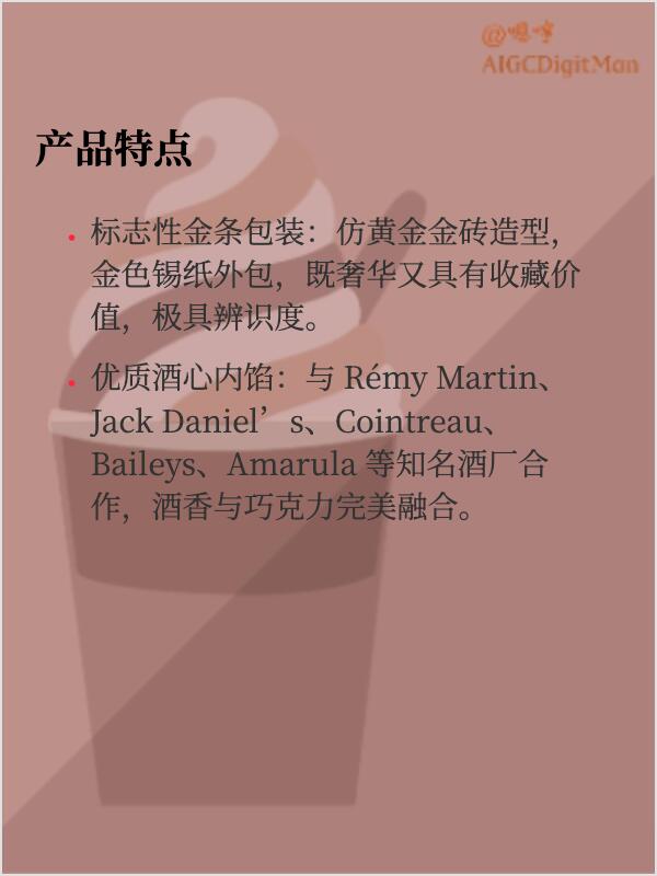 标志性金条包装:仿黄金金砖造型,金色锡纸外包,既奢华又具有收藏价值,极具辨识度。
