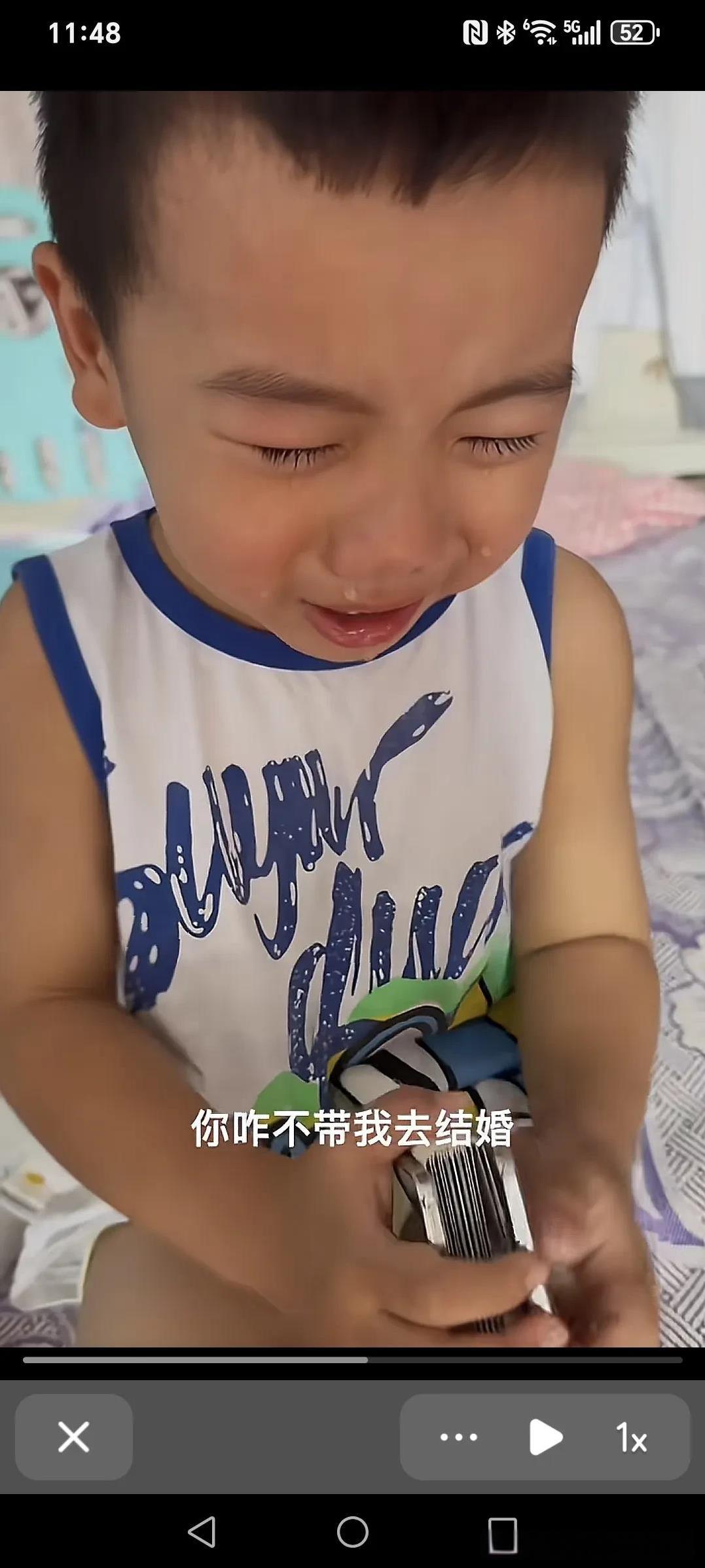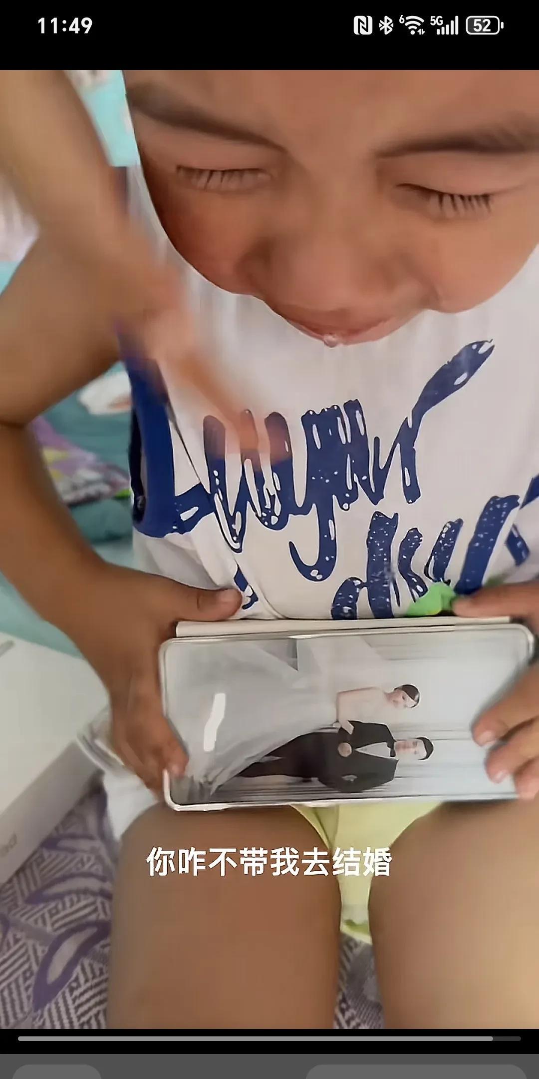 孩子翻到爸爸妈妈的结婚照,一下崩溃了~ 孩子翻到爸爸妈妈的结婚照,一下崩溃了,哭的稀里哗啦,嘴一直念叨着“你咋不带我结婚啊,你咋不带我结婚啊~”妈妈说“我咋不带你结婚,那时候没有你呢”啊啊啊真磕碜。 孩子以后:第一杯敬自己小时候因为爸妈没带我结婚哭的要死要活的。 再安排一次,叫上所有亲人,不要礼品,就为了满足下儿子。安抚下伤心的心灵。 这把娃气的,早知道是这样还不如你应该先生了这娃,在和你老公结婚,他就不会这么伤心了[呲牙][呲牙][呲牙]#妈妈结婚没带儿子的后果#
