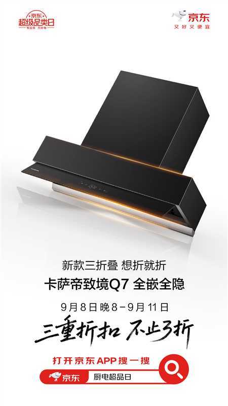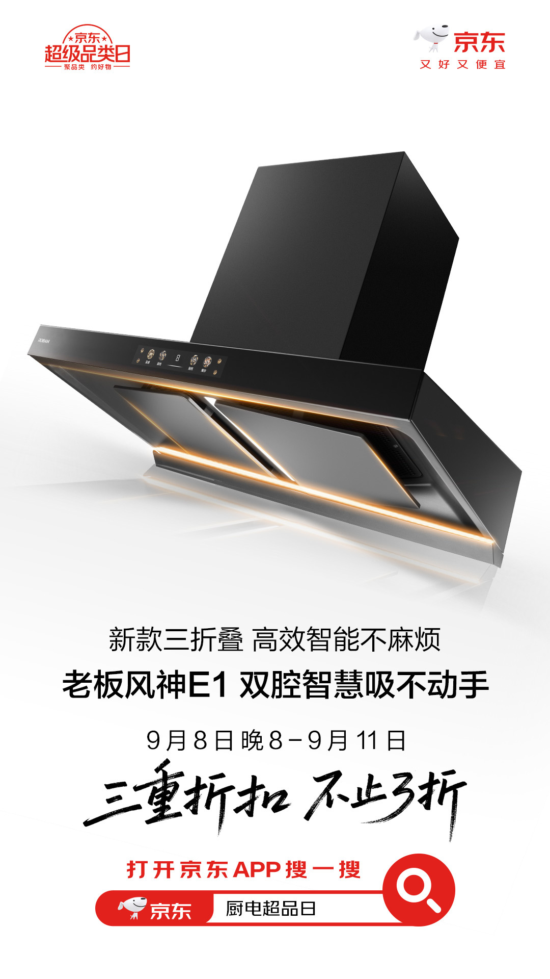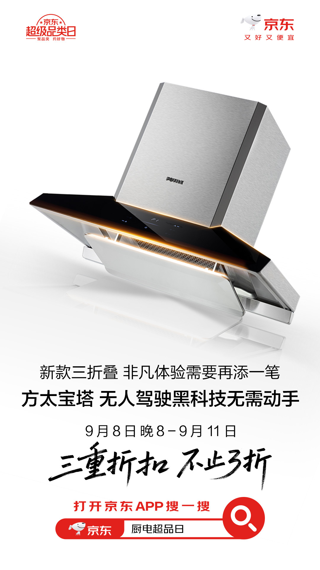 厨房党注意!华为三折叠发布会后别走,京东焕新厨电超级品类日 接棒狂欢!三重折扣不止3折,9.8晚8点-9.11,,打开京东APP搜索【厨电超品日】,方太、老板、华帝、海尔、美的等大牌厨电价格“折”腾到底!不仅国家补贴立减20%,以旧换新再减10%,还有100元水电燃气补贴。超多厨电等你来挑,方太宝塔,搭载无人驾驶黑科技,自动感应升降,全程免动手,净烟更省心!万和白露P9,配备极光炫彩屏,火力状态一目了然,下厨炫出科技感!焕新厨房正当时,这种“折”上又“折”的快乐,还不赶紧戳链接【】厨电三折怎么折都便宜华为新三折叠及全场景新品发布会