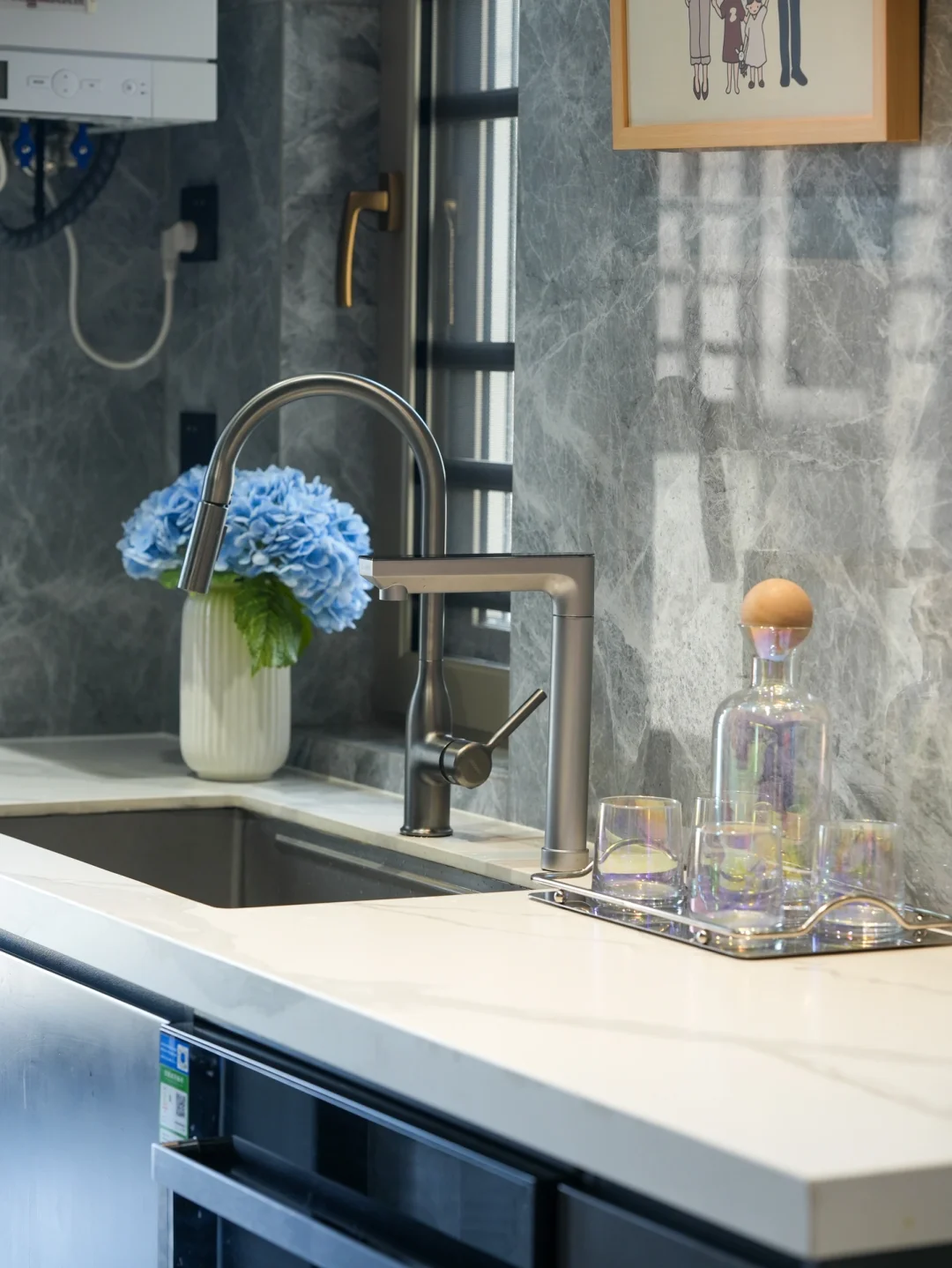 ▪智能龙头还可以挥手感应出水。平时做饭满手油污开关龙头不方便,还容易弄脏龙头。现在挥手就能出水,再也不用费力清理油污了。