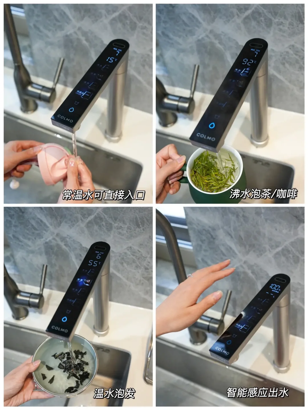 最满意的就是是它的智能龙头,高清屏幕实时显示滤芯寿命和水质TDS值,支持四档温度选择:常温水、温水、泡发和沸水,不用再像以前一样,喝水还要先烧开再让它冷却了。一键选择你想要的温度,宝宝要喝奶的时候,直接选择温水模式,不到一分钟就能冲泡好适合温度的奶粉,真心方便。