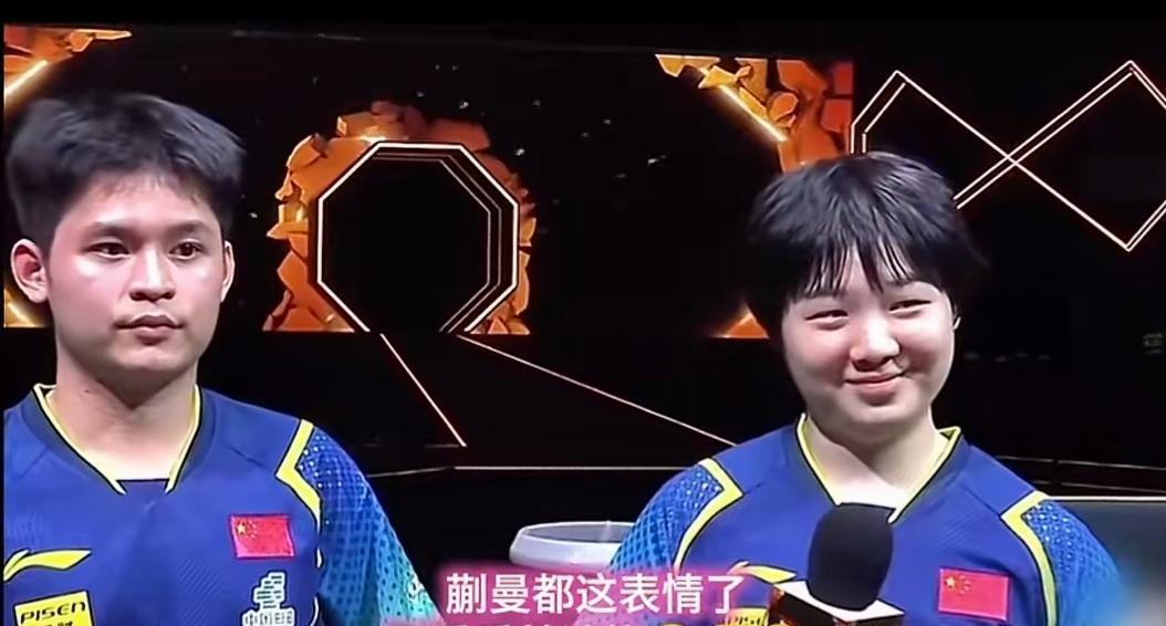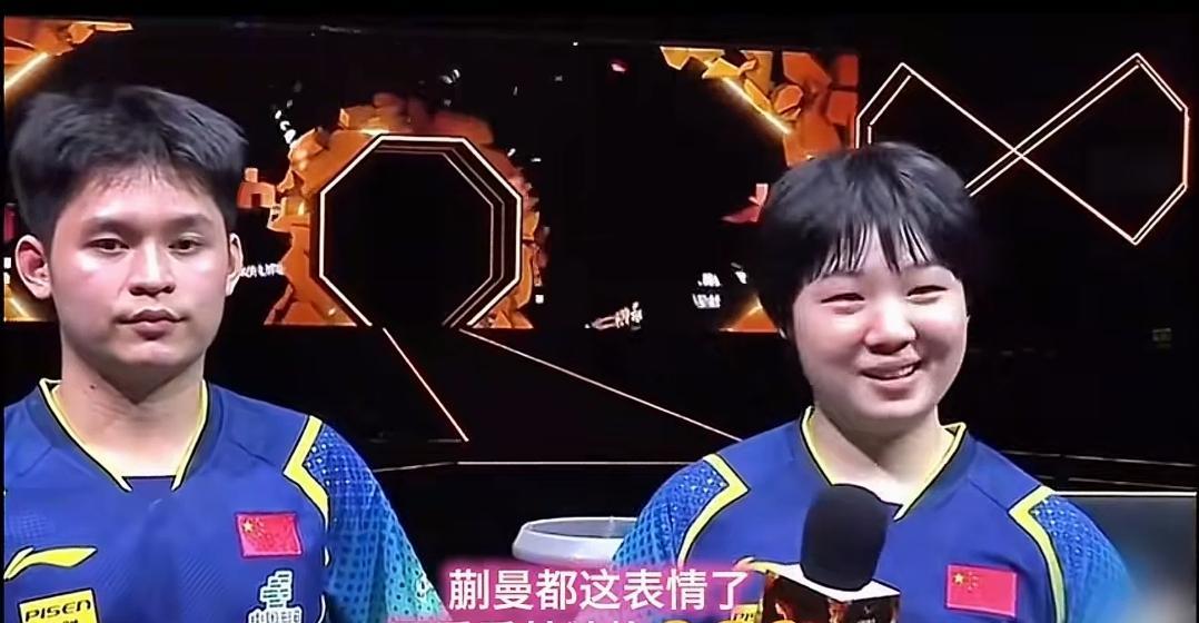 蒯曼都笑成一朵花了,林诗栋依然表情管理到位。 其实看林诗栋嘴角都上扬,但就是能忍住,还要装做很严肃的样子,一看这个图就忍不住笑。 一个20岁的孩子,在公众面前都是小心翼翼,采访更是小心谨慎。 特别是和蒯曼站一起很拘谨,不敢眼神交流,更别提身体接触,比赛结束拍手也是像征性的。 蒯曼大一岁就不一样了,采访时可以有说有笑,不端着很真实,这点小石头得学着点,不需要刻意避嫌,因为你俩都是小透明很单纯。 爱笑的蒯曼运气不会差,希望也可以感染到小石头。 图片来自网络侵权可删。