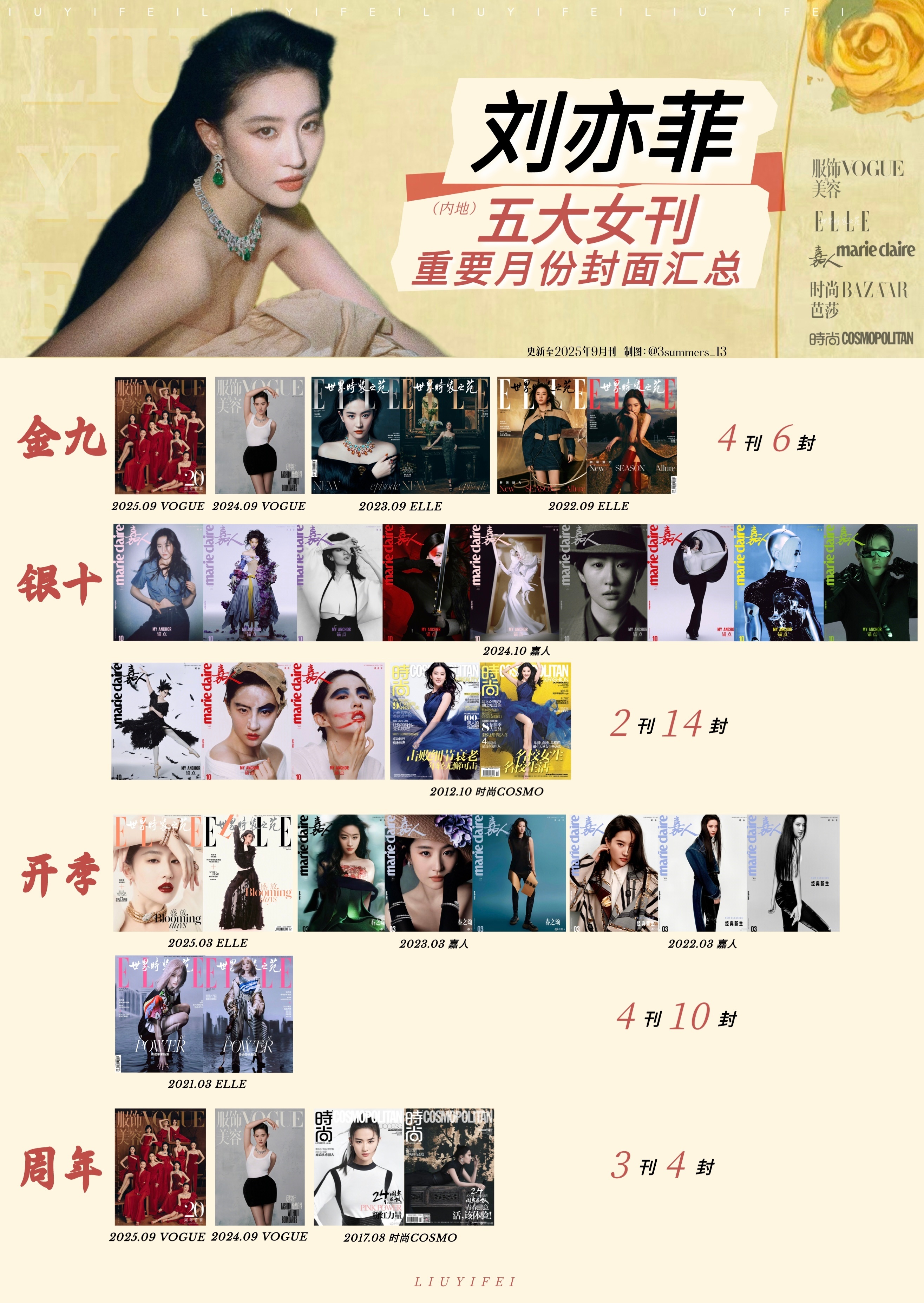 刘亦菲五大女刊战绩强的可怕[跪了][跪了]