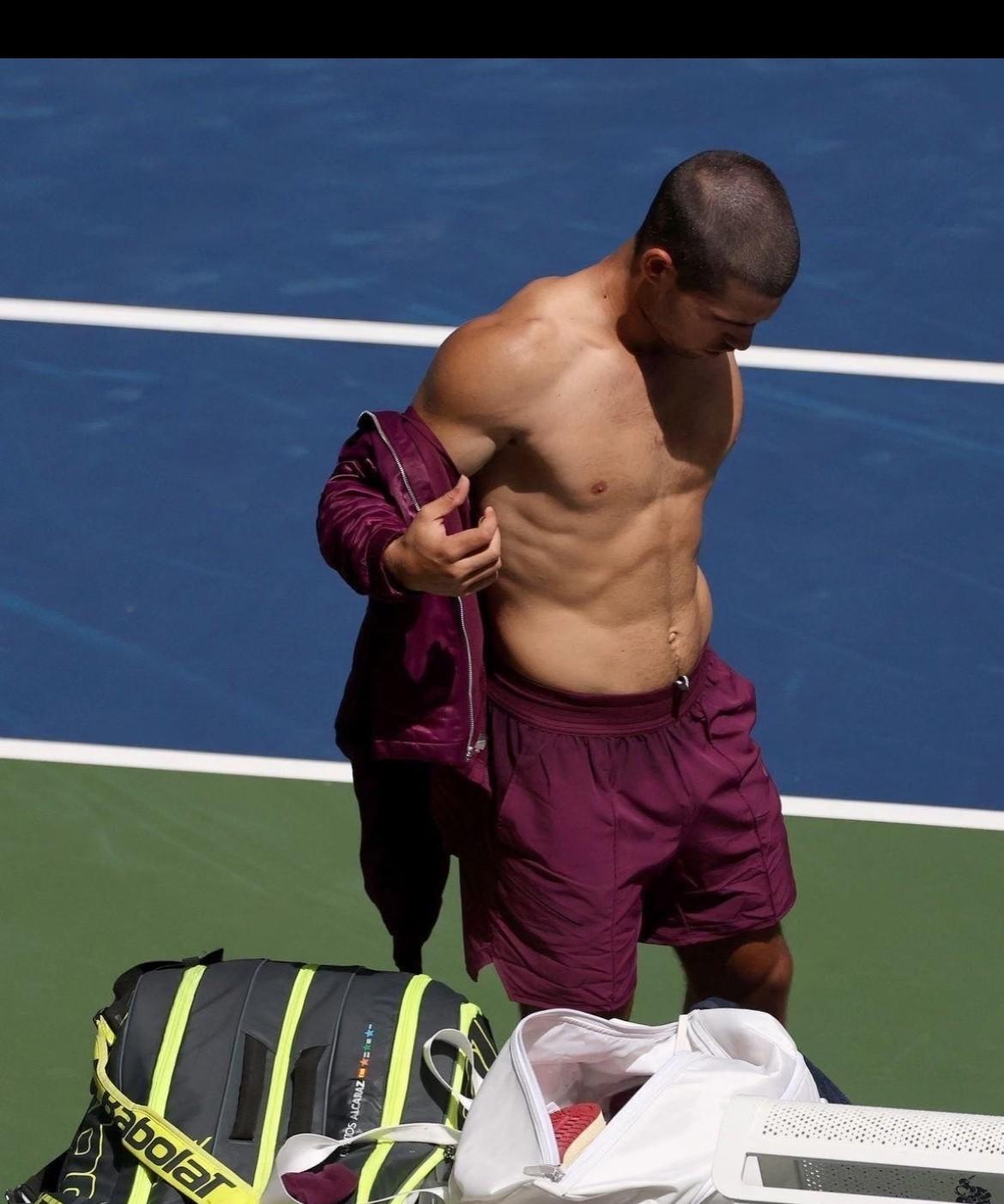 看完美网男单四强辛纳、阿卡、德约、阿利雅西姆的腹肌照, 我的目光完全被运动员们的