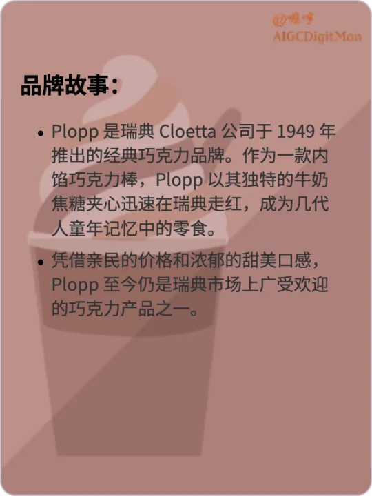 凭借亲民的价格和浓郁的甜美口感,Plopp 至今仍是瑞典市场上广受欢迎的巧克力产品之一。