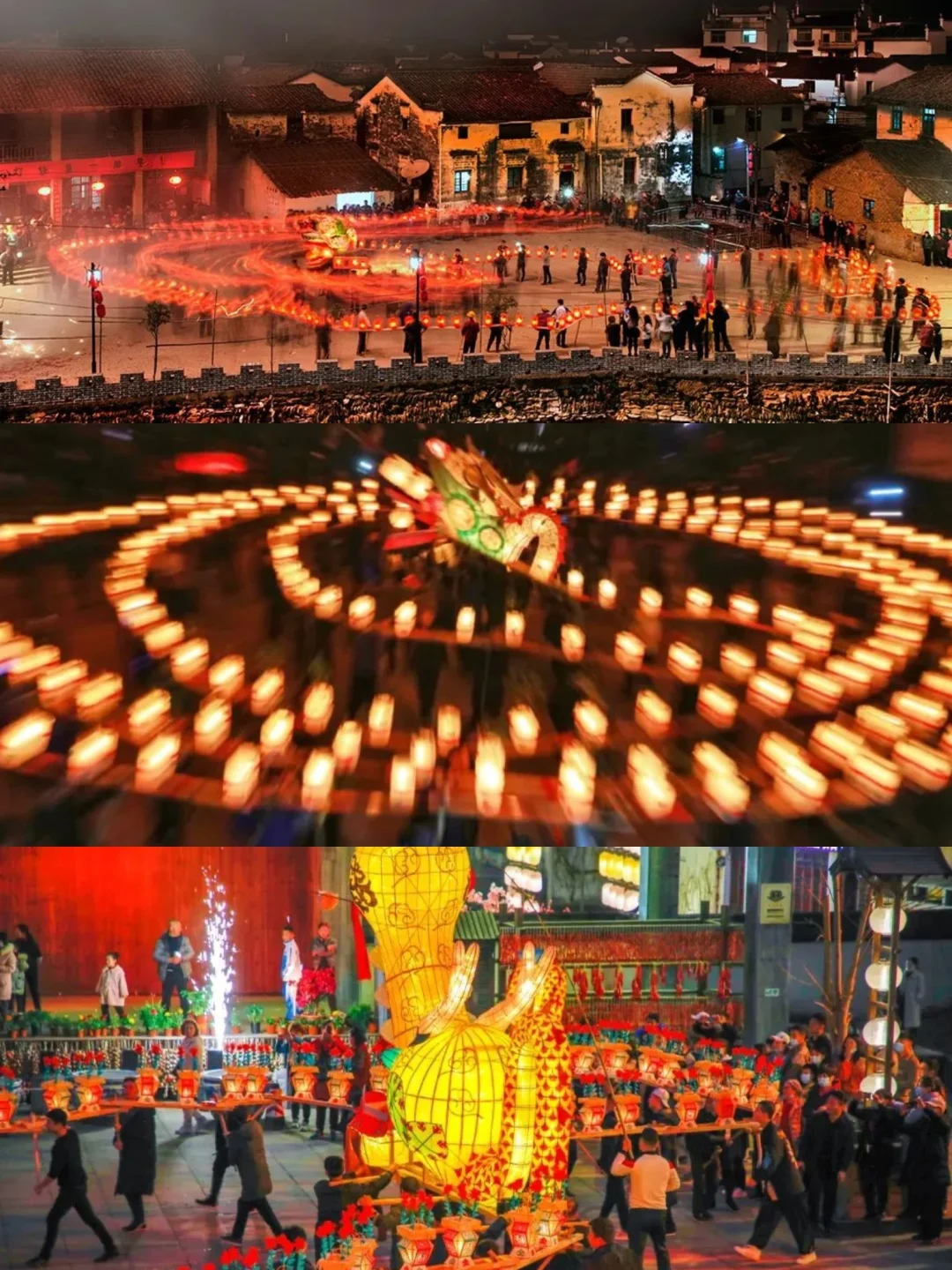春节来婺源,看什么玩什么⁉️ 乡村过大年!当然不能错过一场 乡村非遗龙灯大戏👏 除了各个景区和乡镇的活动 今年婺源县城将为各位小金豆举行 超绝“非遗龙灯烟火🎇”大戏 板龙灯➕花灯巡游➕傩舞➕徽剧➕豆腐架➕抬阁 全部同时同天上演‼️👏 🎉按婺源习俗,龙灯到哪❗️ 烟花🎆到哪! 绝对是满城烟火闹新春! ⏱时间:正月初三、初四 📍婺源县城 ✅非遗巡游 ⏰时间:初三、初四下午14:00——16:00 👉活动路线:婺源县文化广场——景观桥——上饶银行——广电中心——江泽民画像——东门大桥——武营广场活动内容:甲路抬阁、江湾豆腐架、徽剧、傩舞、西冲花灯、盘山花灯等非遗项目沿路线开展巡游。 ✅烟火板龙灯🎇 ⏰活动时间:初三、初四下午17:30起灯 👉活动路线:婺源县文化广场——文公大桥——旅游集散中心——上饶银行——江泽民画像——东门大桥——武营广场活动内容:非遗板龙灯将沿线路开展巡游贺春活动。 ⚠️温馨提示: ✔️活动均在县城,免费观看 ✔️气温应该在5-10℃,建议呢大衣羽绒服外套 ✔️因晚上龙灯全城烟火,会有阶段性封路,大家合理安排时间,注意安全
