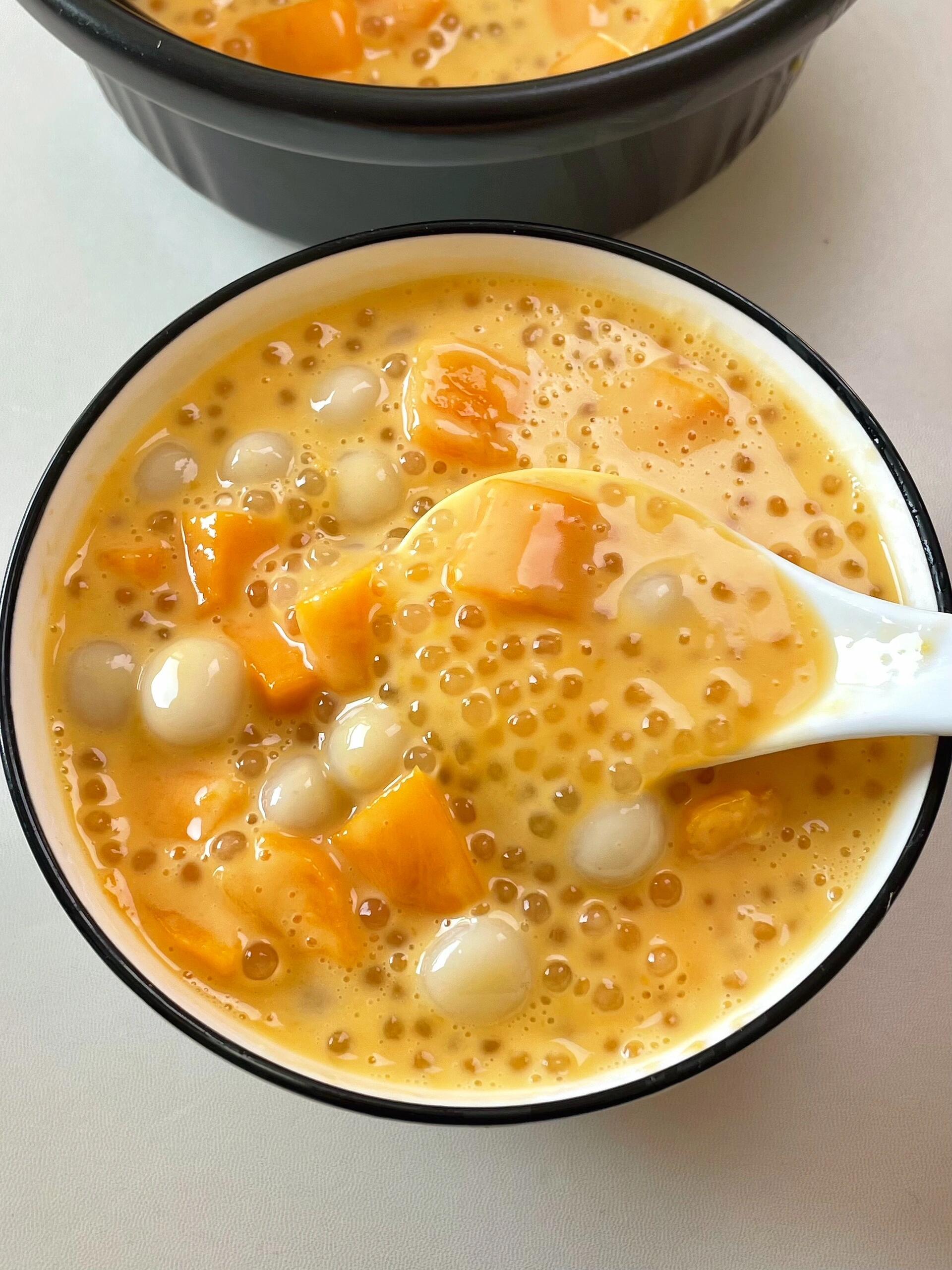 芒果圆子西米露|芒果香甜浓郁~搭配糯叽叽的圆子和Q弹的西米,自己做的料足足的,一口下去真的太满足