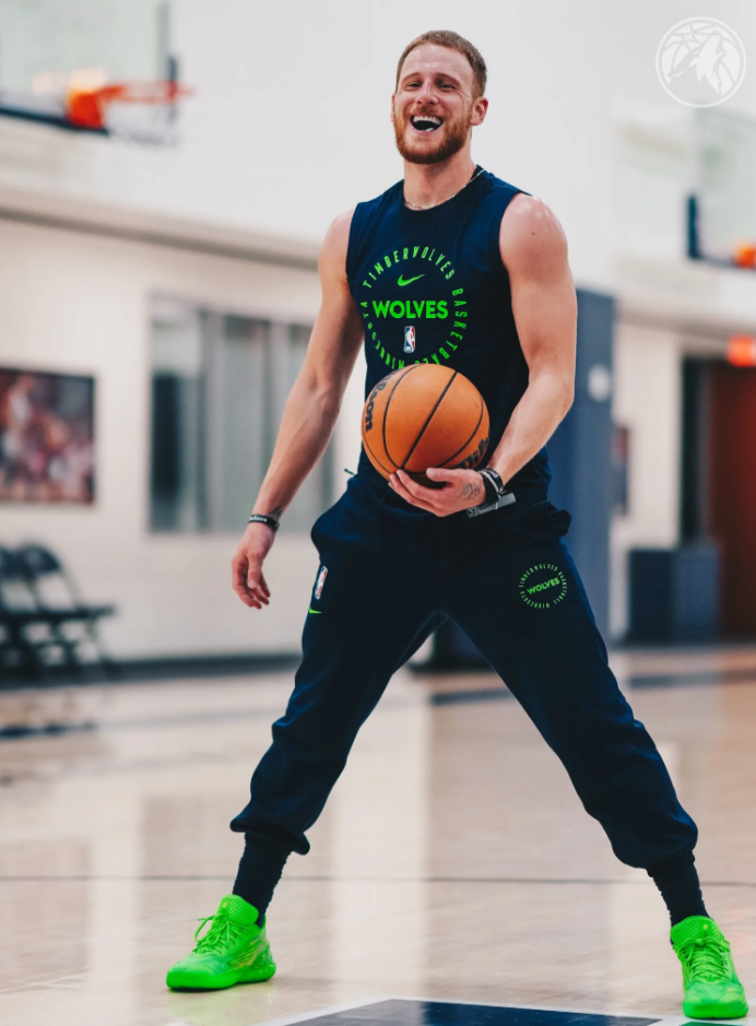 森林狼社媒晒出丹特-迪文琴佐的休赛期训练照片,并配文: “周六的训练。” 上赛季