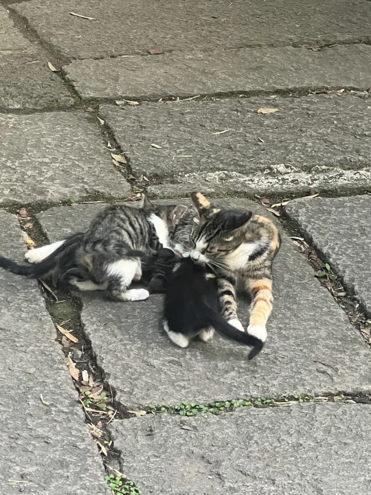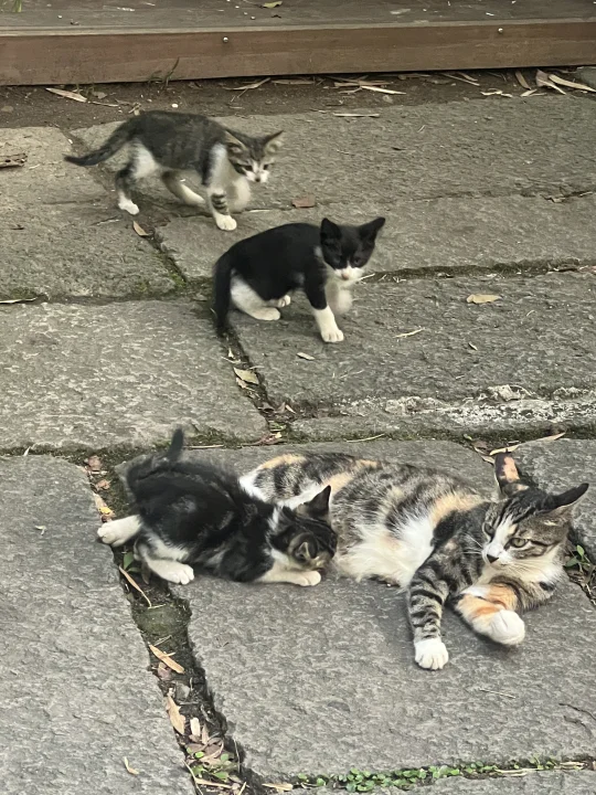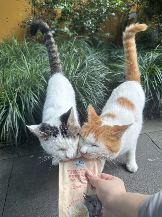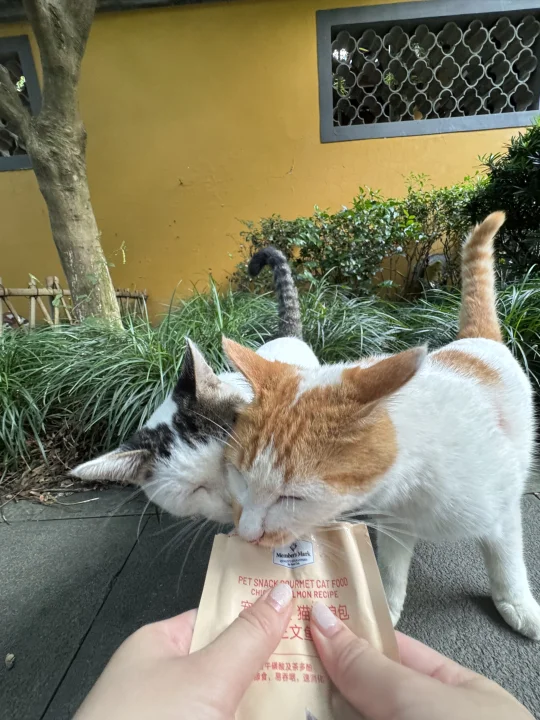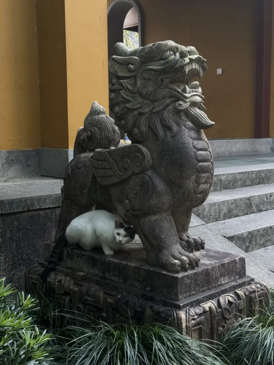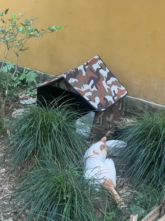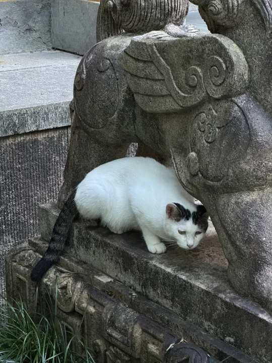 今日礼佛,开发了寺庙的隐藏款 就是猫猫们! 从正门开始,就一只接着一只 寺庙的草丛里还有猫猫的窝,粮,水