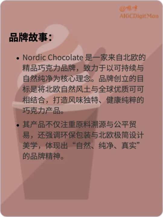 品牌创立的目标是将北欧自然风土与全球优质可可相结合,打造风味独特、健康纯粹的巧克力产品。