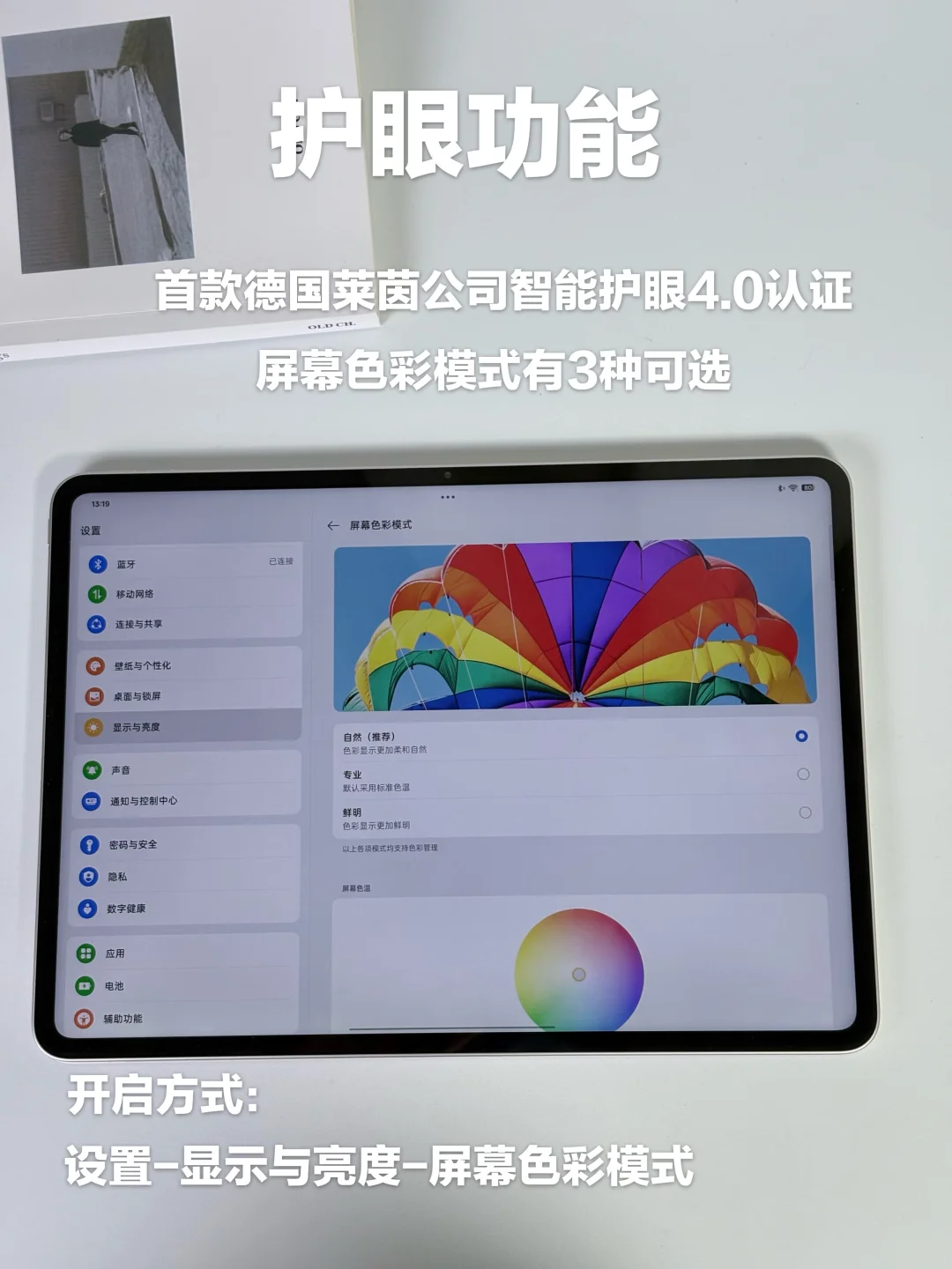德国莱茵公司智能4.0认证 屏幕色彩有3种可选 长时间用眼更放心。