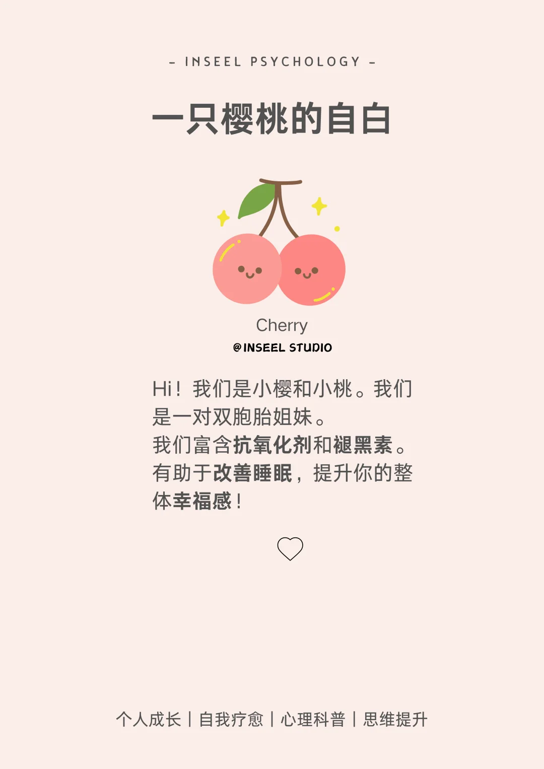 👉富含抗氧化剂和褪黑素。有助于减少身体的炎症反应,可以提升你的情绪和认知功能(草莓、覆盆子等浆果类水果也富含同样功效哦)