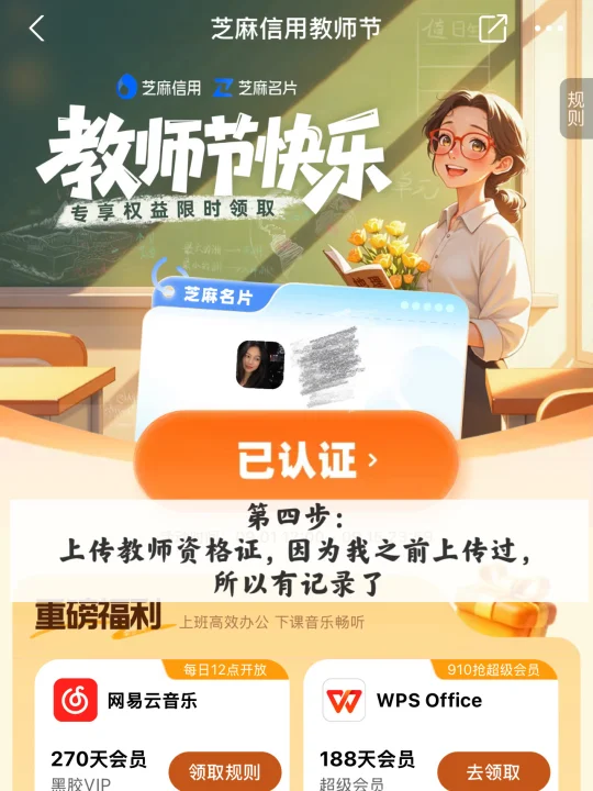 教师资格证没白考!支付宝这波福利快冲呀!宝子们!有教师资格证的都看过来!上支付宝搜【放学啦】,上传证书完成验证,就能领网易云音乐会员、WPS超级会员,还有夸克全年会员大礼包!大学生、教培人也能领,这波羊毛必须薅!🤩🤩