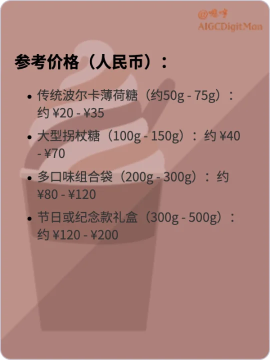 传统波尔卡薄荷糖(约50g - 75g):约 ¥20 - ¥35