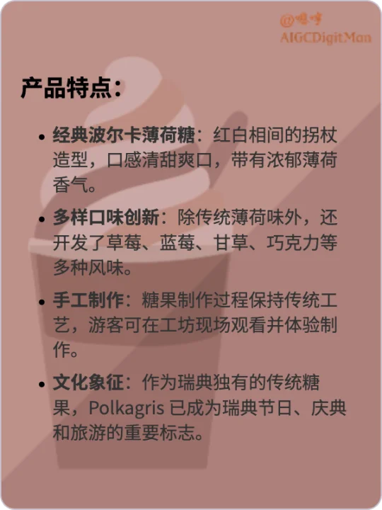 Grenna Polkagriskokeri 作为格伦纳镇上最具代表性的糖果工坊之一,延续了这一经典工艺,让波尔卡薄荷糖成为瑞典的标志性甜品与伴手礼。