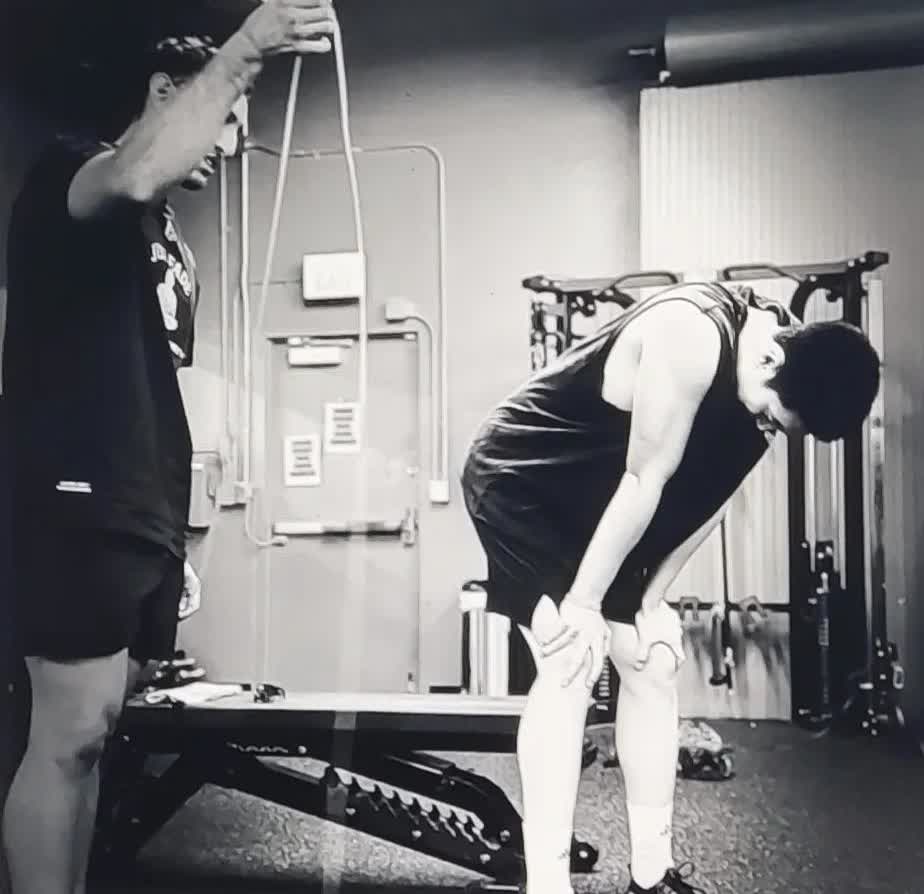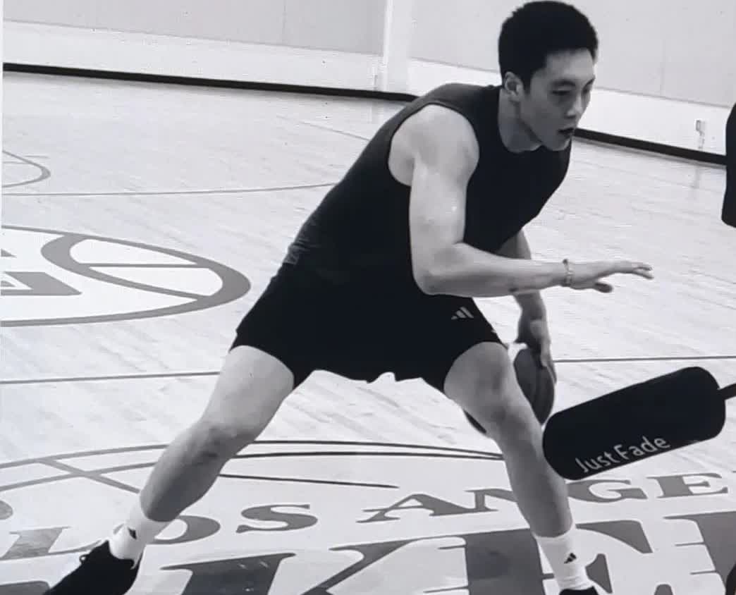 胡明轩看来膝盖是真有点问题,贴上厚厚的胶布,人也显瘦几分,他从美国特训归来后,原