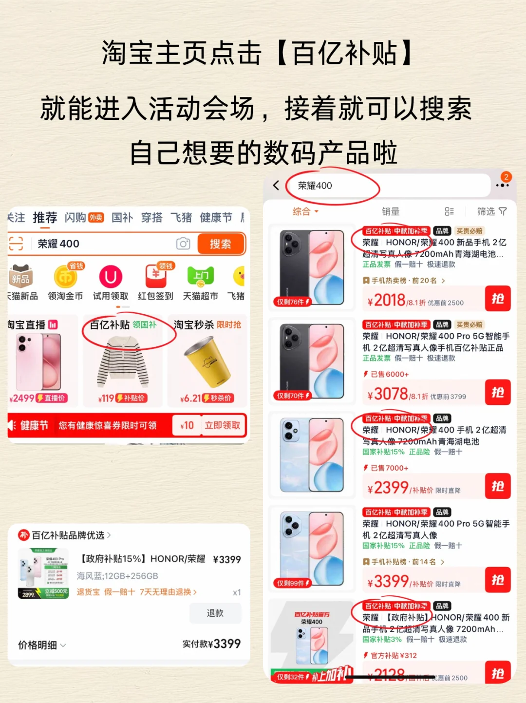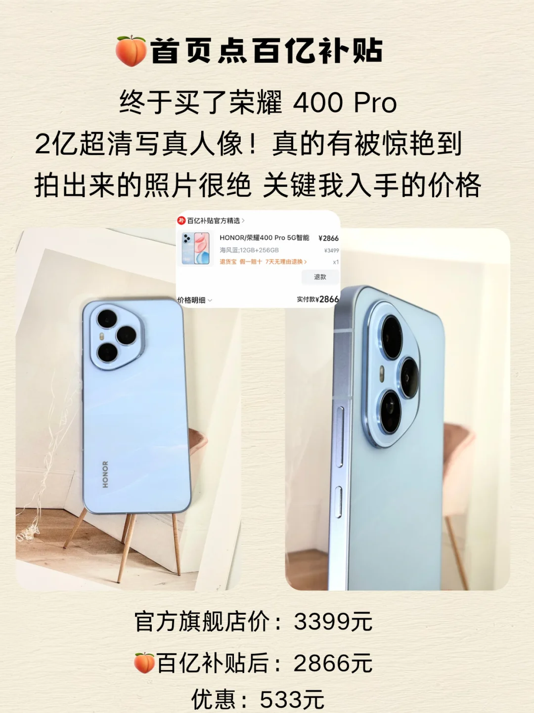 ✅荣耀 400 Pro 淘宝百亿补贴2866元
