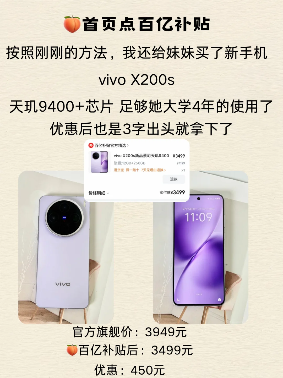 ✅vivo X200s 淘宝百亿补贴3499元