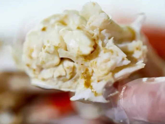 3)把蘸料汁调匀。梭子蟹蘸上酱汁,肉质鲜甜肥美。