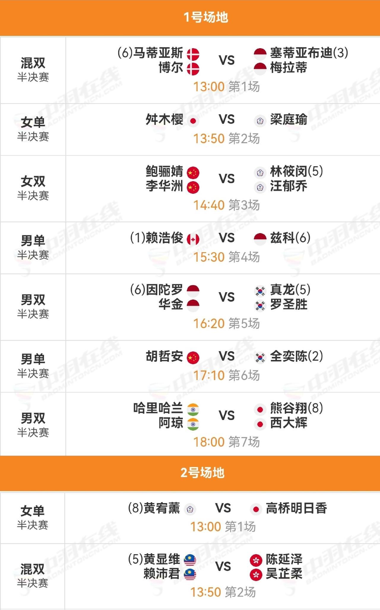 2025年印尼羽毛球大师赛,半决赛胡哲安对阵全奕陈,赖浩俊对阵兹科,鲍骊婧/李华
