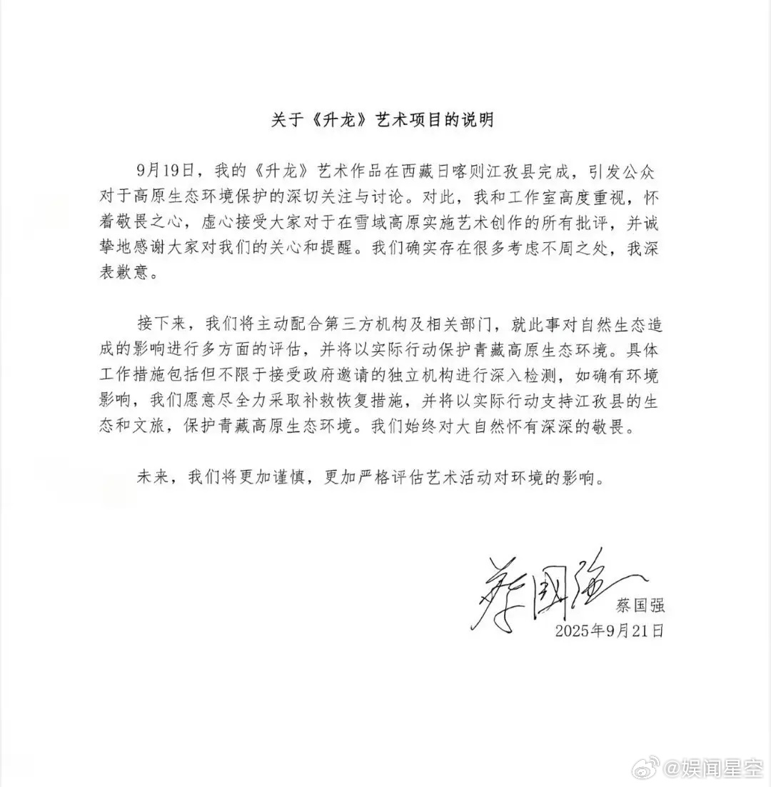 除了始祖龙策划这场没意义的烟花秀之外,蔡国强作为烟花秀的实行者,肯定要负责任。