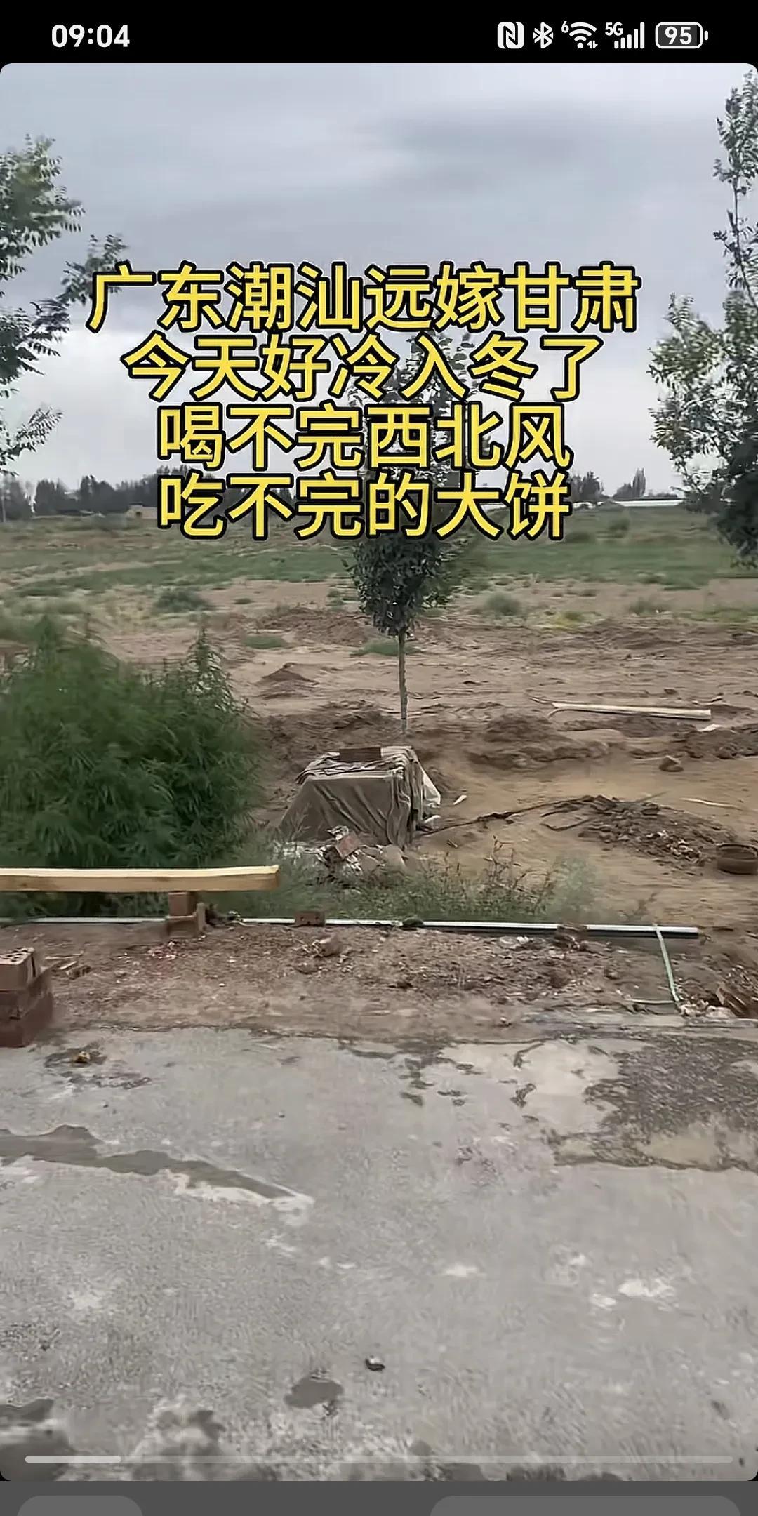 广东潮汕远嫁甘肃,今天好冷入冬了,喝不完西北风,吃不完大饼... 很多网友问我爸爸妈妈当初怎么会同意我嫁那么远,那时候知道我谈了一个甘肃的男朋友,一直反对担心了几天都睡不着觉,我硬要,我爸爸就对我没办法。 甘肃定西呆过一年,那地方常年缺雨少水非常清苦气候干燥,经济落后,工业凋零,倍受艰敖,陌生人。 甘肃气候太干了风很大经常刮风 山上大多都是光秃秃的绿植很少! 恋爱的女人都是傻子,结婚后清醒就玩完犊子。不过不管是在哪里选对了人才是关键。 甘肃的人纯扑善良,只是先活习惯不同,既来之则安之,慢慢的适应吧[泣不成声][泣不成声][泣不成声]#潮汕人远嫁# #广东远嫁大西北# #广东远嫁北方#