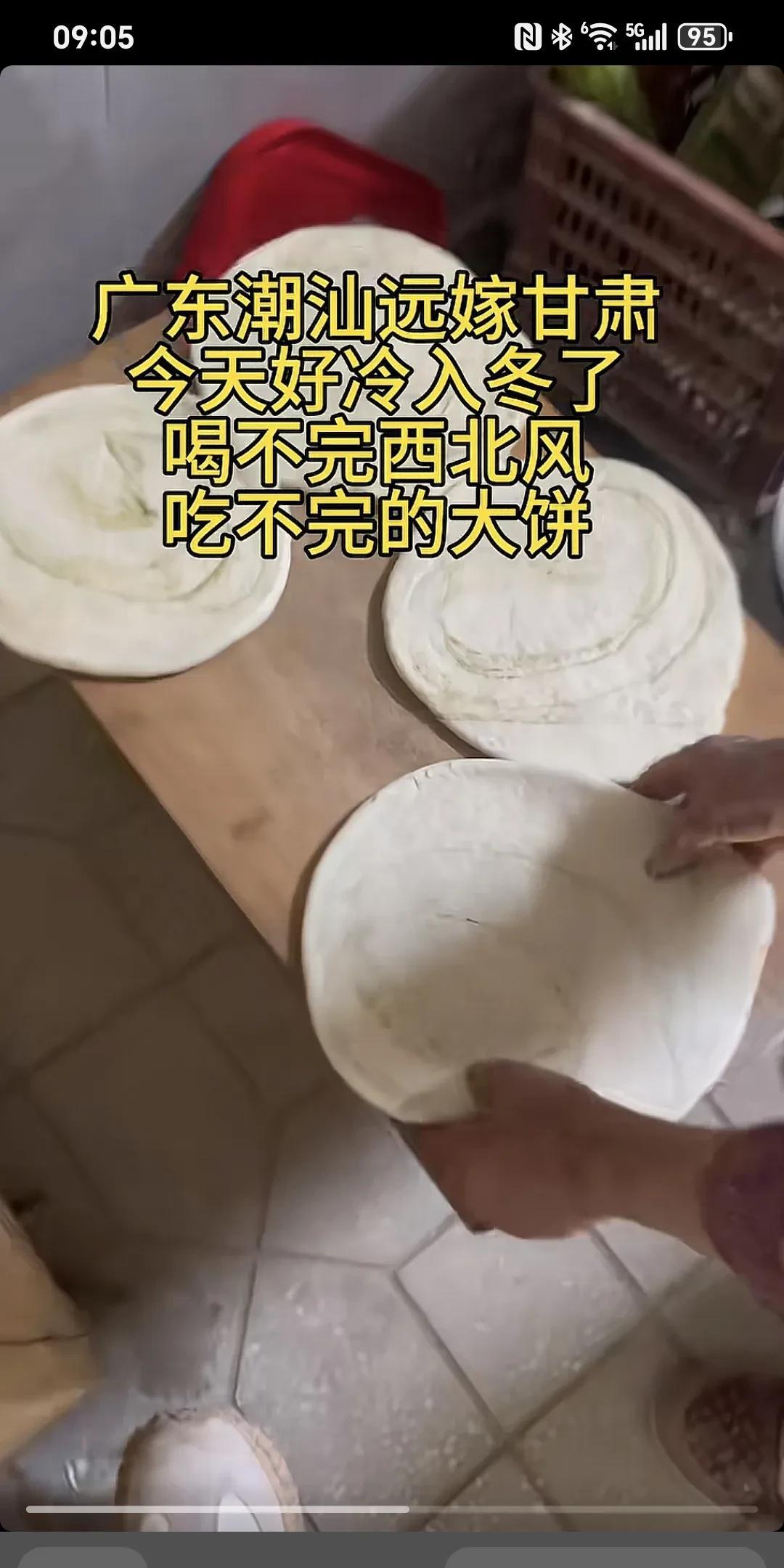 广东潮汕远嫁甘肃,今天好冷入冬了,喝不完西北风,吃不完大饼... 很多网友问我爸