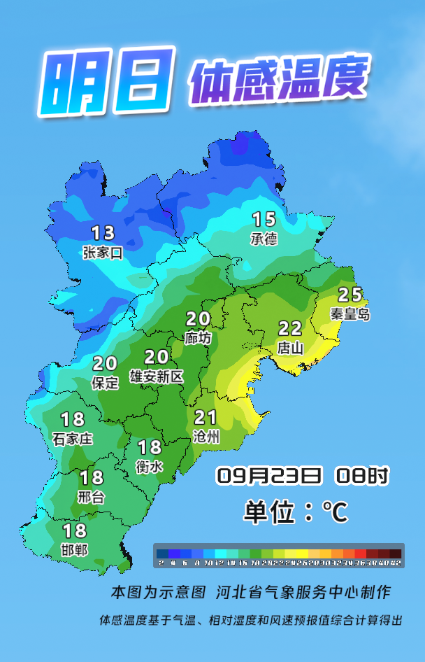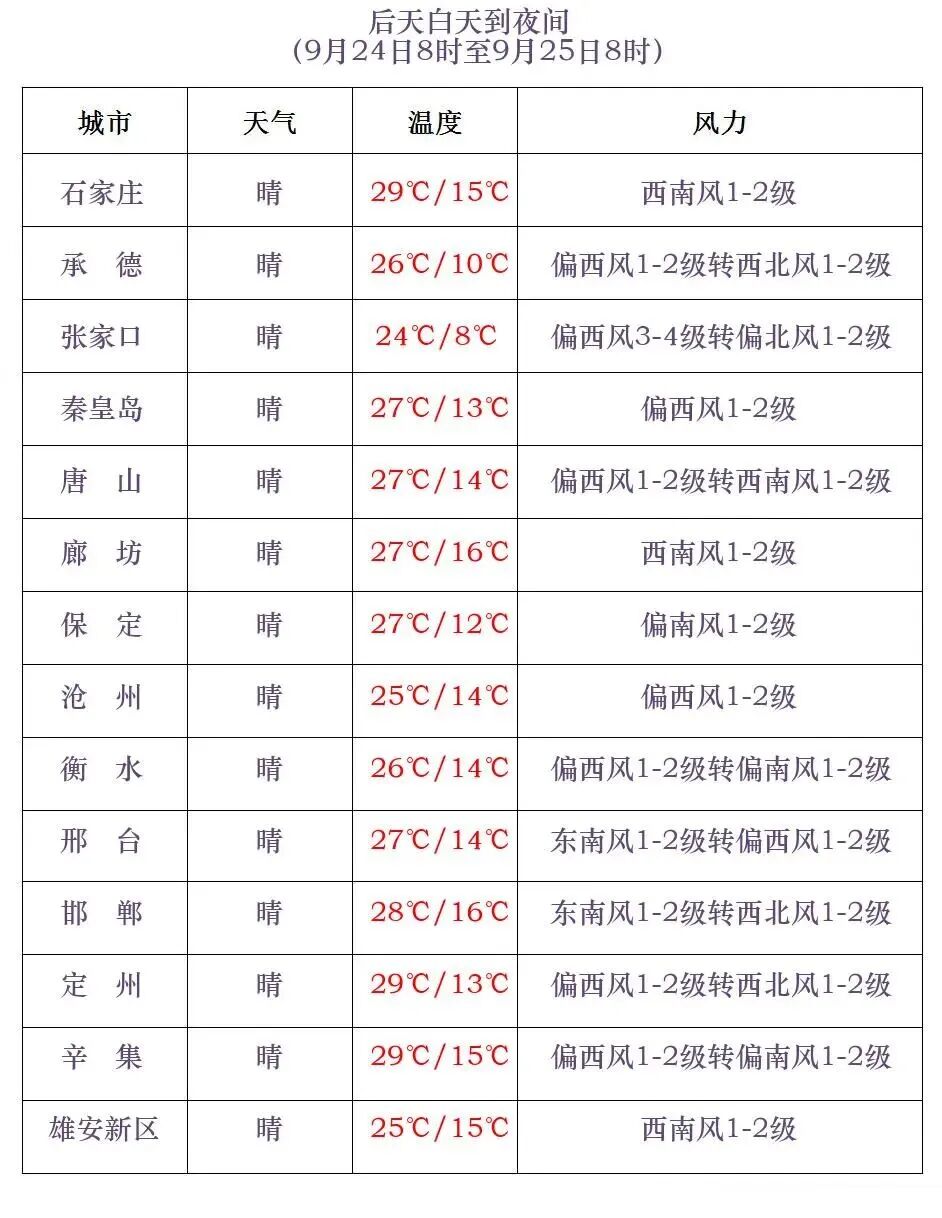 明天夜间到24日,张家口北部、承德北部、唐山中东部、秦皇岛、沧州东部多云间阴有小雨或零星小雨转晴,其他地区阴转晴。