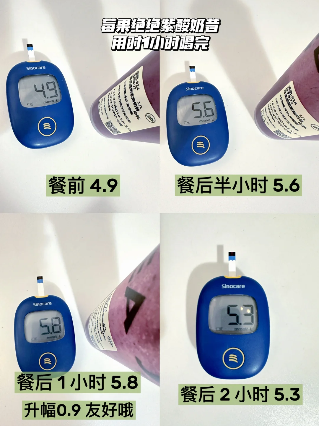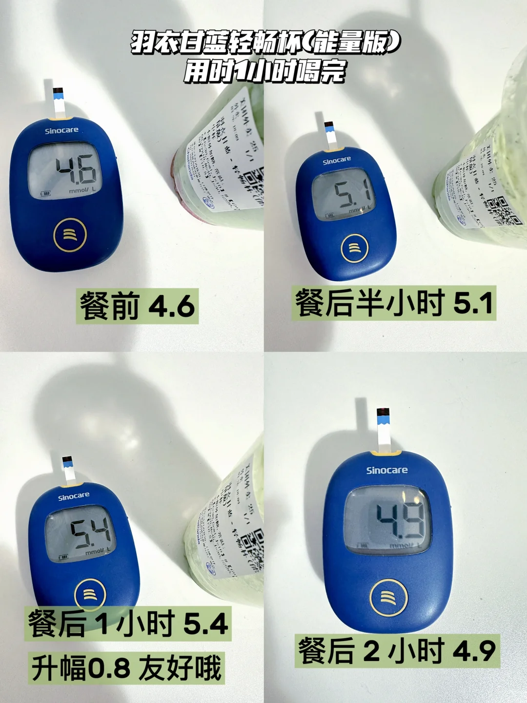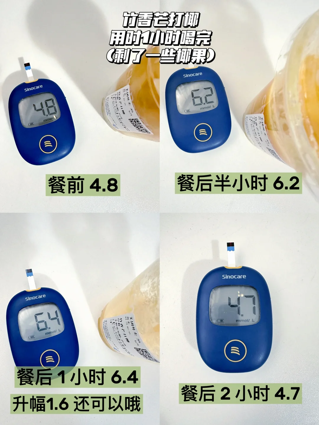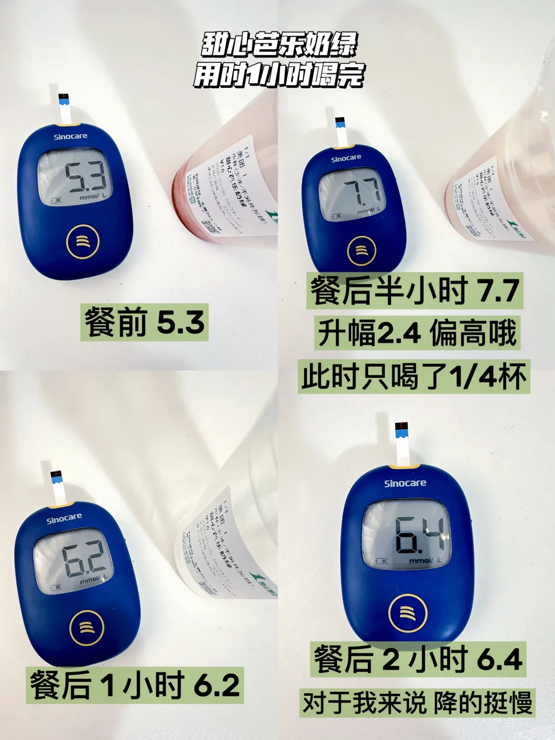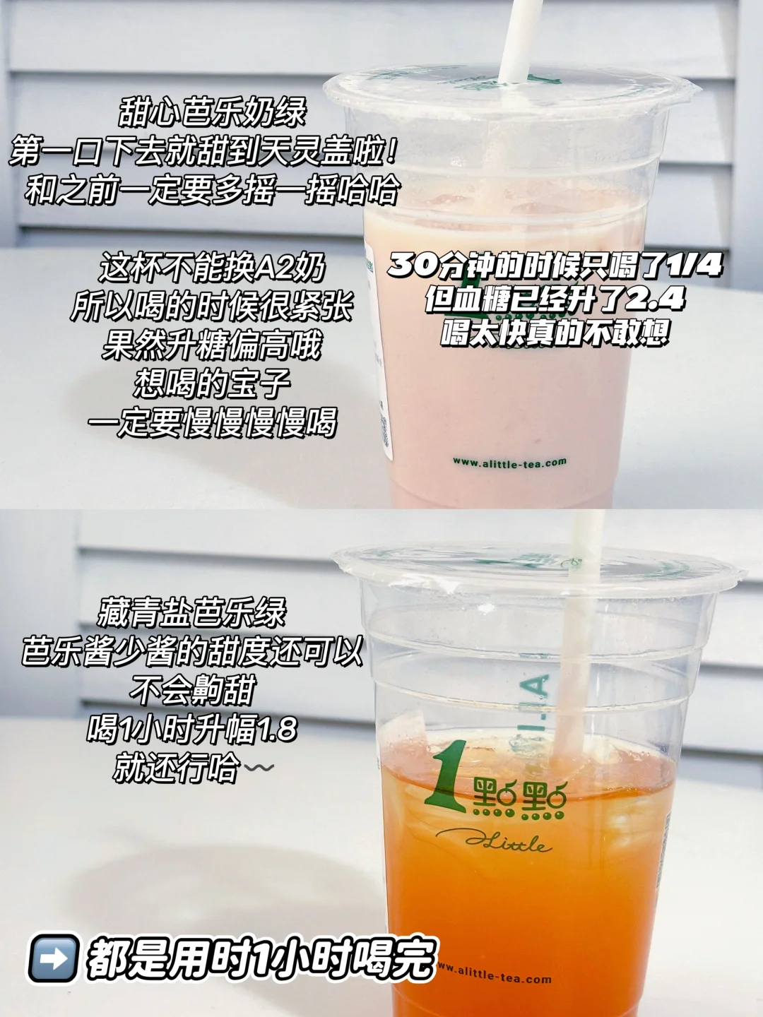 本次测试都喝的比较慢,都是1小时喝完,但依然能看出升糖的高低不同〰️如果半小时喝完,升的会更高一点,宝子们怕升糖就要慢点喝,适量喝哈〰️