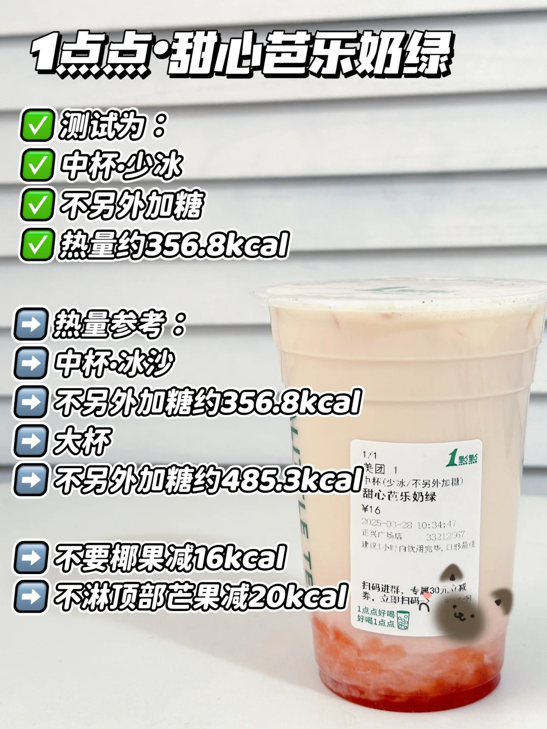 测试为:中杯·少冰🧊不另外加糖 热量约356.8kcal