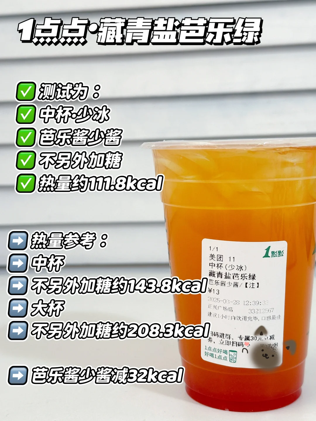 测试为:中杯·少冰🧊不另外加糖 芭乐酱少酱 热量约111.8kcal