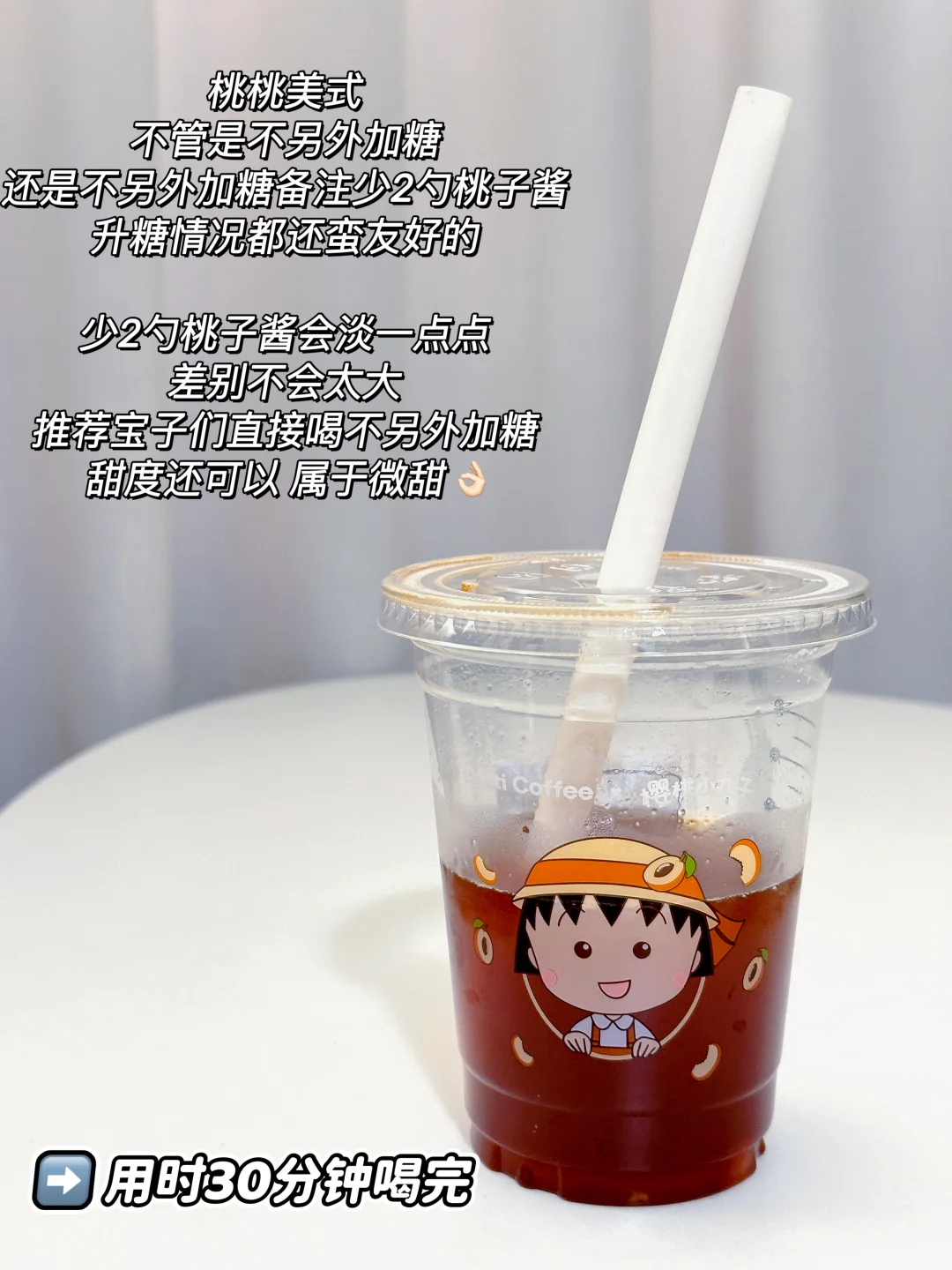 桃桃美式,不管是不另外加糖,还是不另外加糖备注少2勺桃子酱,升糖情况都还蛮友好的〰️