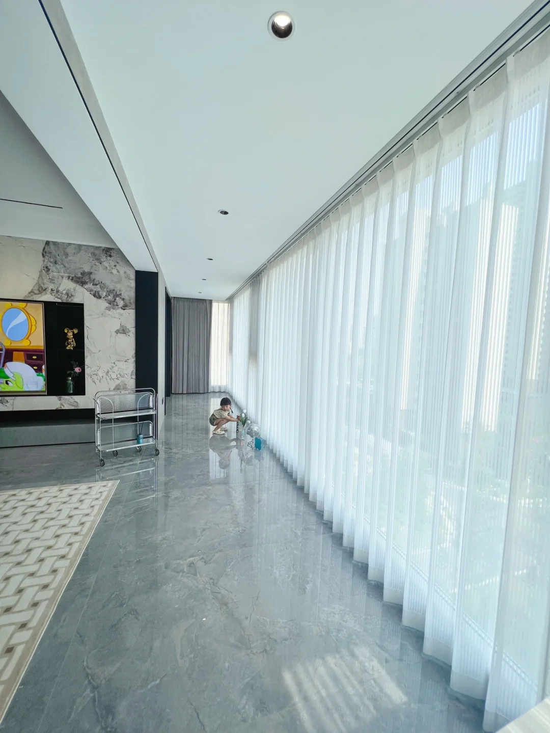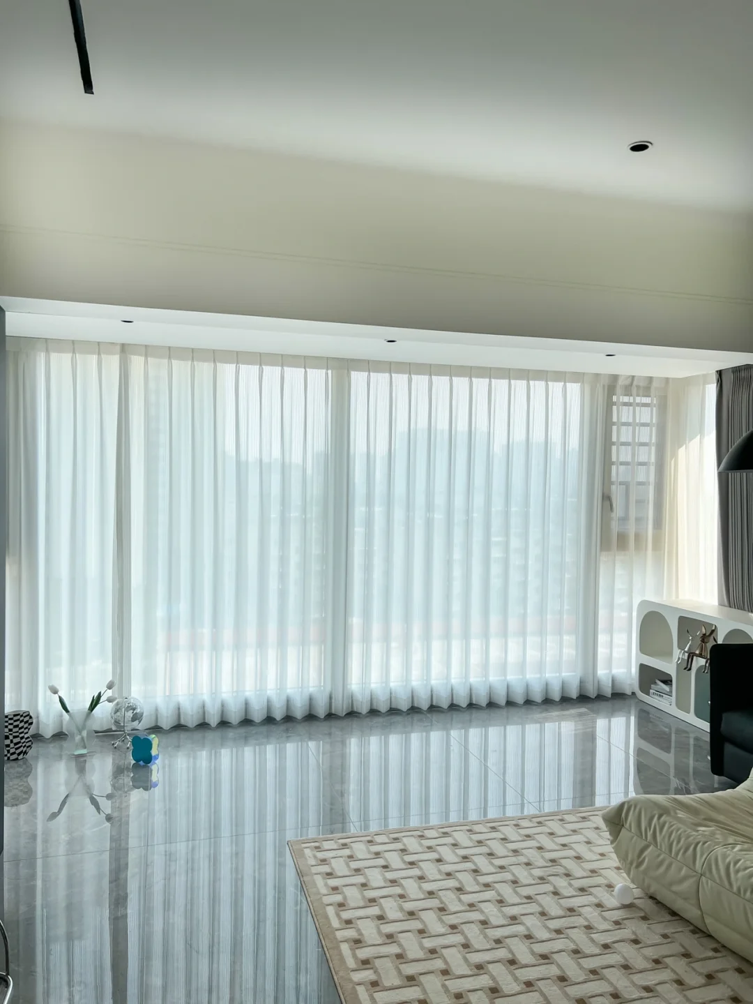 🍃窗帘高度建议离地1-2cm比较好打扫卫生