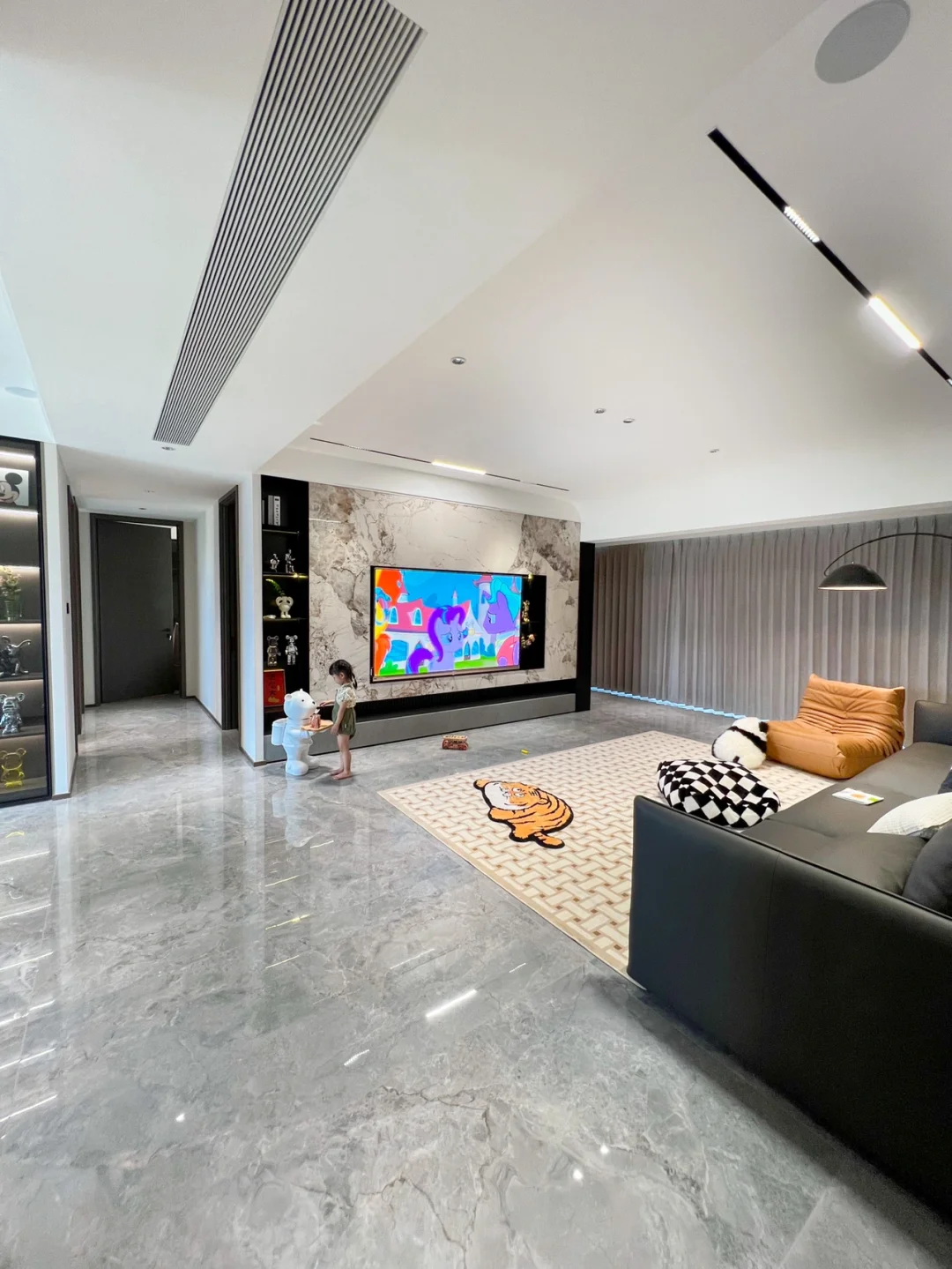 🔸客厅:灰色雪尼尔+竖百叶纱