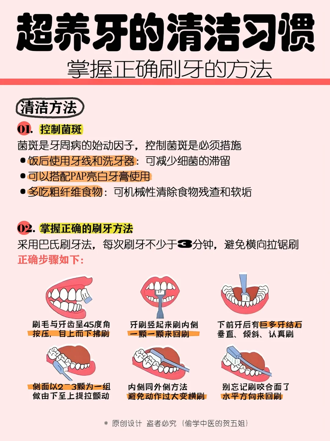 🌟采用巴氏刷牙法,每次刷牙不少于3分钟