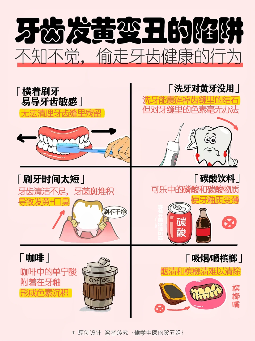 5⃣️咖啡等有色饮料:附着在牙釉,形成色素沉积