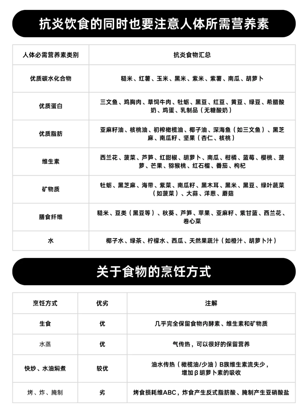 🏷附带:人体所需7大营养素 以及食物的烹饪方式及清洗储存💦 -