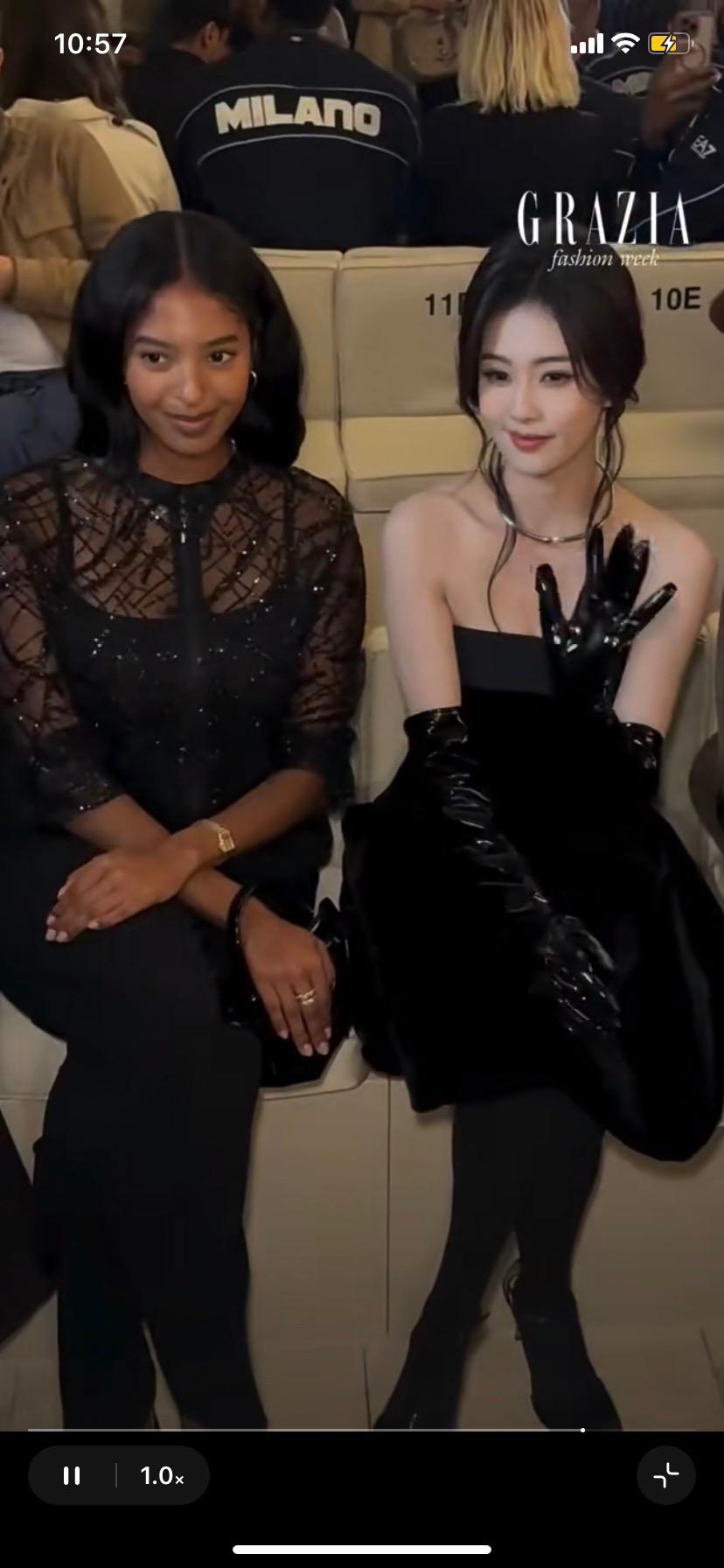 白鹿Armani米兰时装周看秀生图。白鹿米兰时装周看秀生图