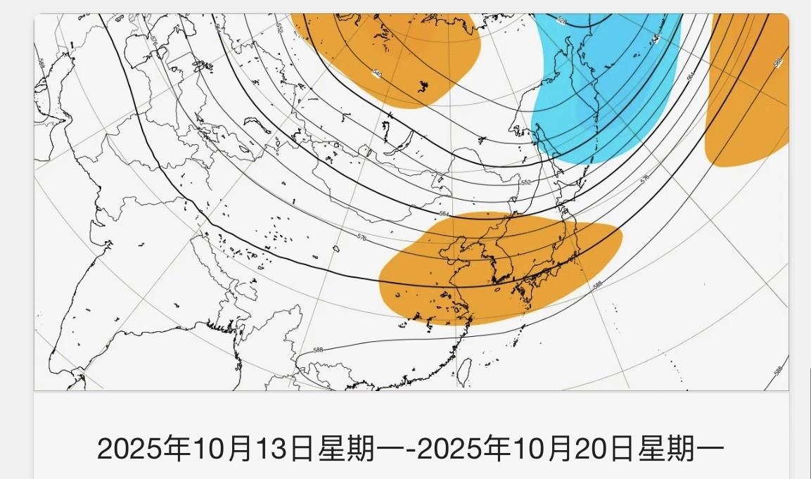 【远期天气展望】从远期500百帕来看10月中旬中纬度环流开始有个向南经向调整。简单来讲,槽后冷空气开始发力南下。给南方带来明显降温趋势。通过以上这种背景分析,10月中旬前,对应副高持续偏北偏强局面,未来华北雨也要多起来,江南一带高温不断上演。创出新高。大家需要做好防暑降温措施。