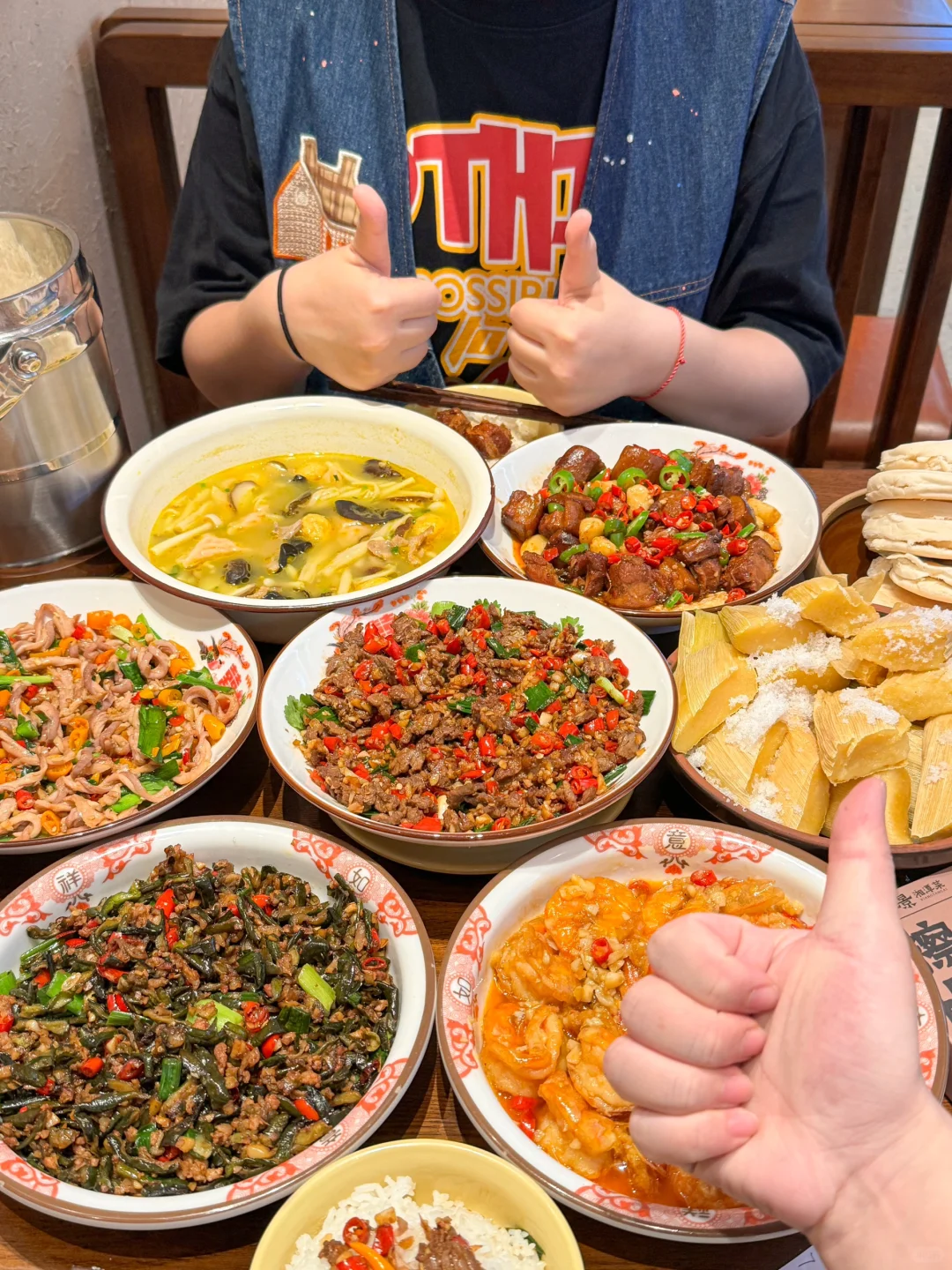 万家丽到底藏着多少美食啊!! 感谢本地人带路🥹真心平价好吃的湘菜馆!! 主打湘潭菜!菜品份量扎实还好吃平价!!口碑嘎嘎好,每天饭点坐满本地人。求求了,别只知道去网红店了,这里不香吗?? 店名:菜园丰景📍就在万家丽商场7楼!! 点了满满一桌,每道菜都好下饭啊!!黄瓜皮炒肉沫、基围虾都绝了…小炒黄牛肉里的牛肉很多很嫩,真的都很好吃推荐啊啊啊! 唯一的缺点就是太费米饭了😭😭 总而言之,真心推荐这家!!